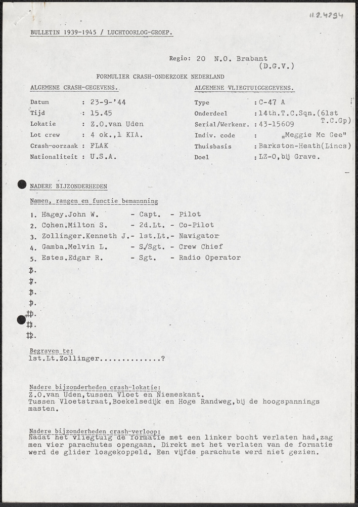 Bulletin 1939-1945/Luchtoorlog-Groep, Formulier Cras...