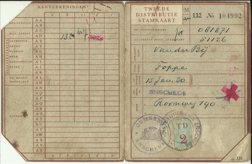 Tweede Distributiestamkaart op naam van, Van der Bij...