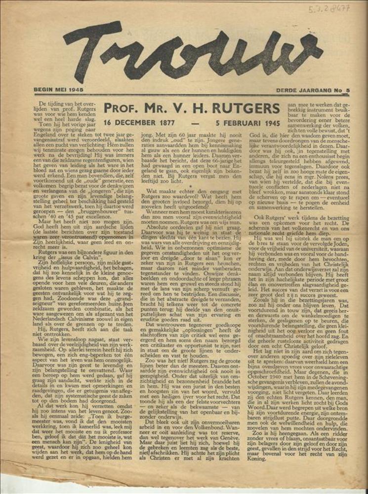 Trouw Begin Mei 1945 Derde jaargang no 5