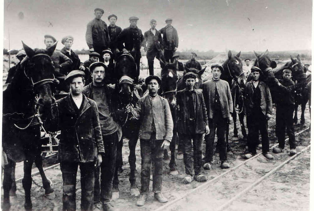 Mannen met paarden voor grondverzet