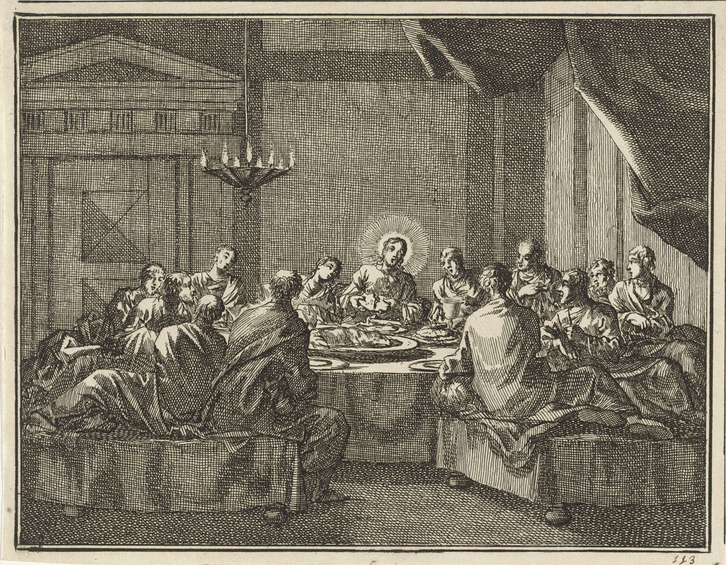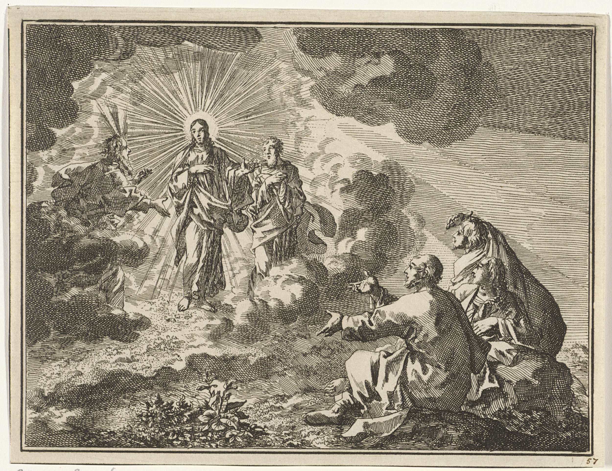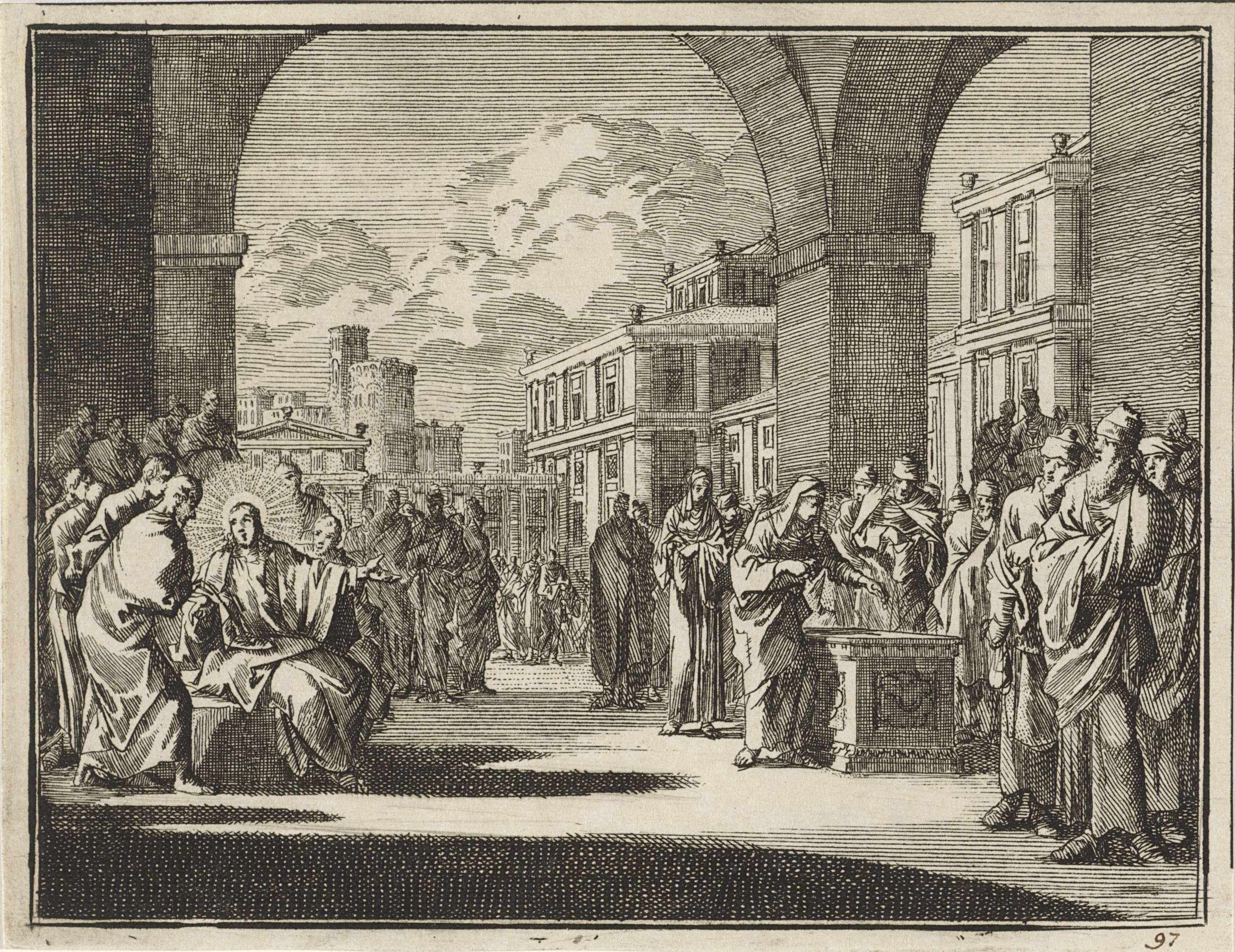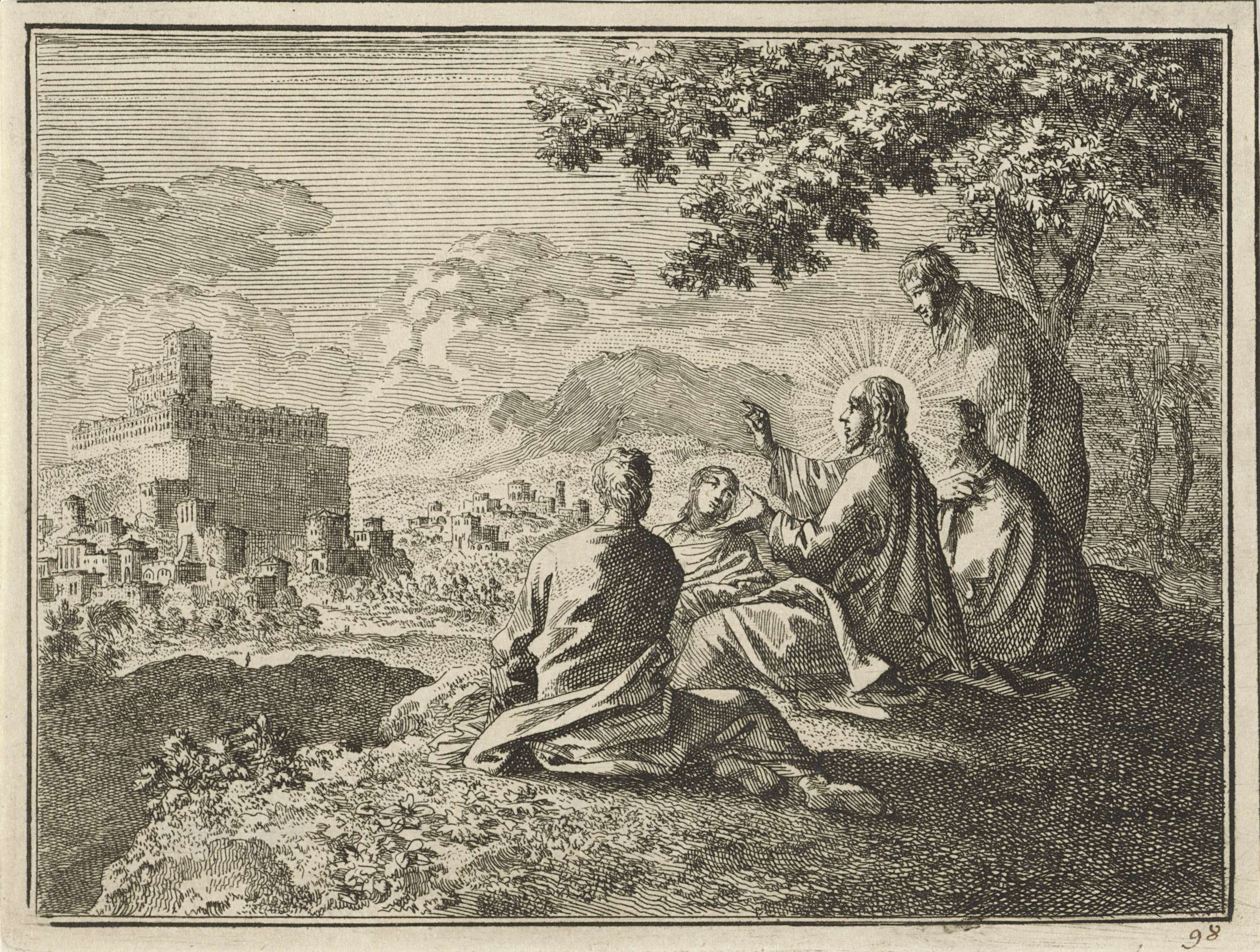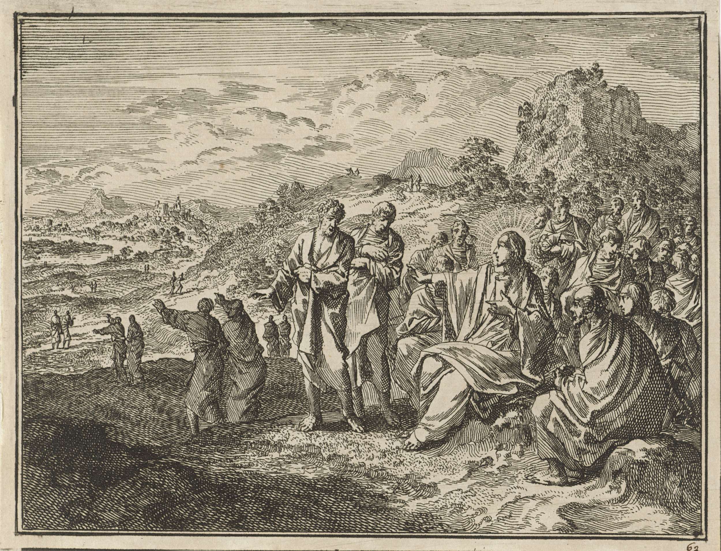 Christus wijst zijn discipelen op een klokhen die ha...