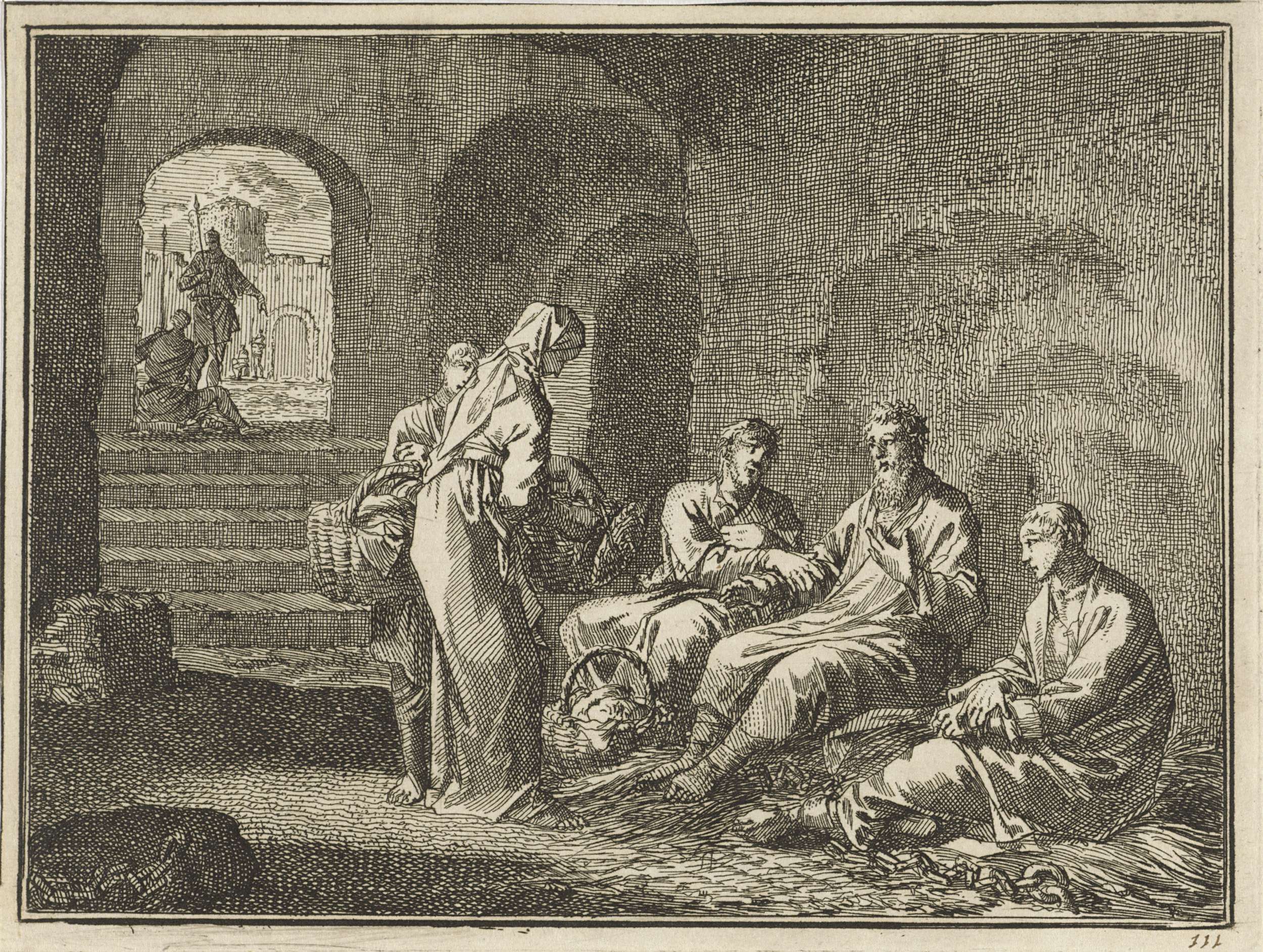 Profeet Sefanja en geketende vrouw bij gezicht op st...