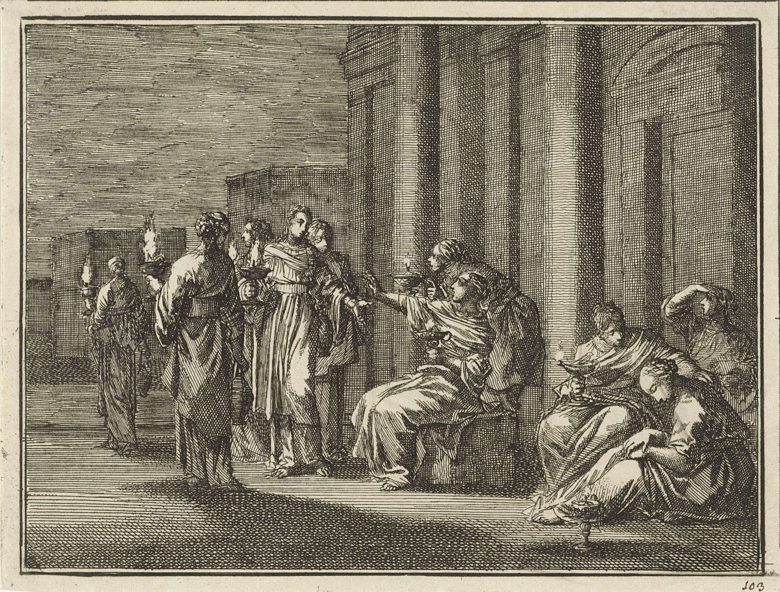 Reliëf met soldaten die vrouw gevangen hebben genomen