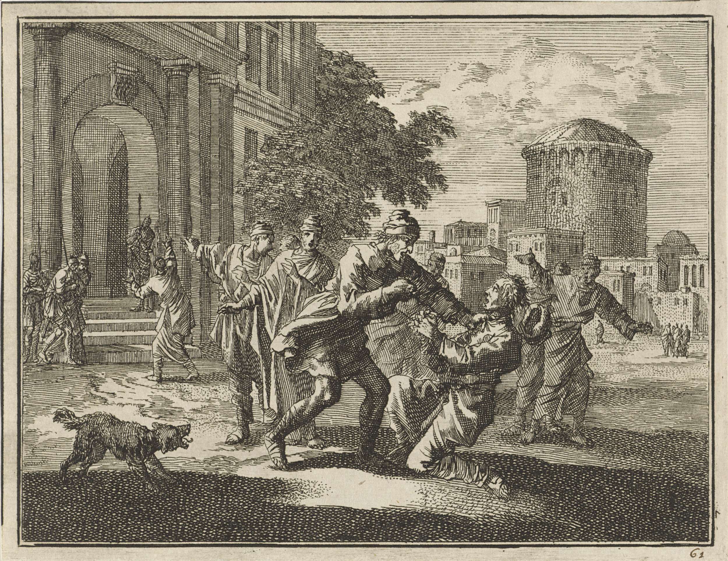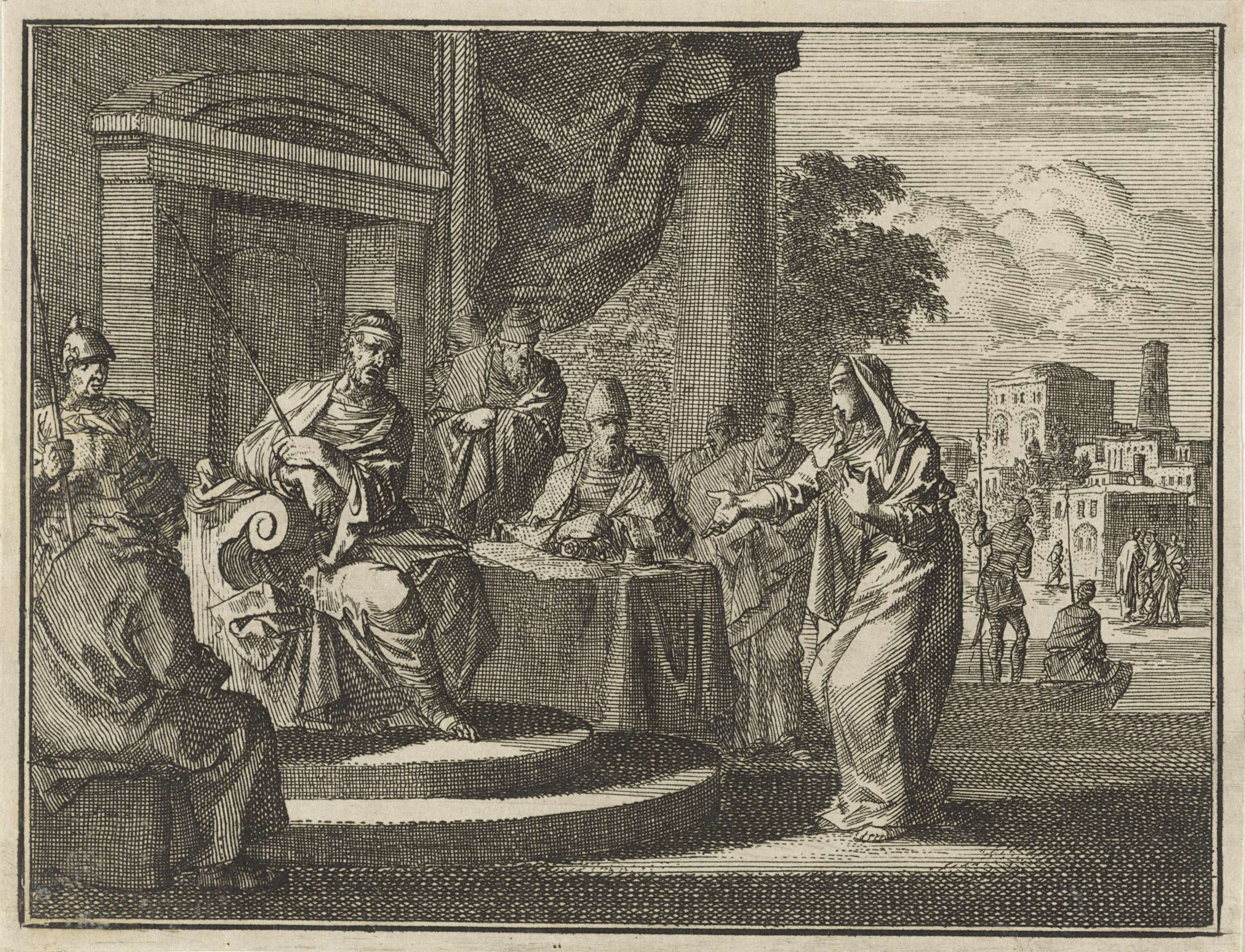 Gelijkenis van de rechter die wordt lastiggevallen d...