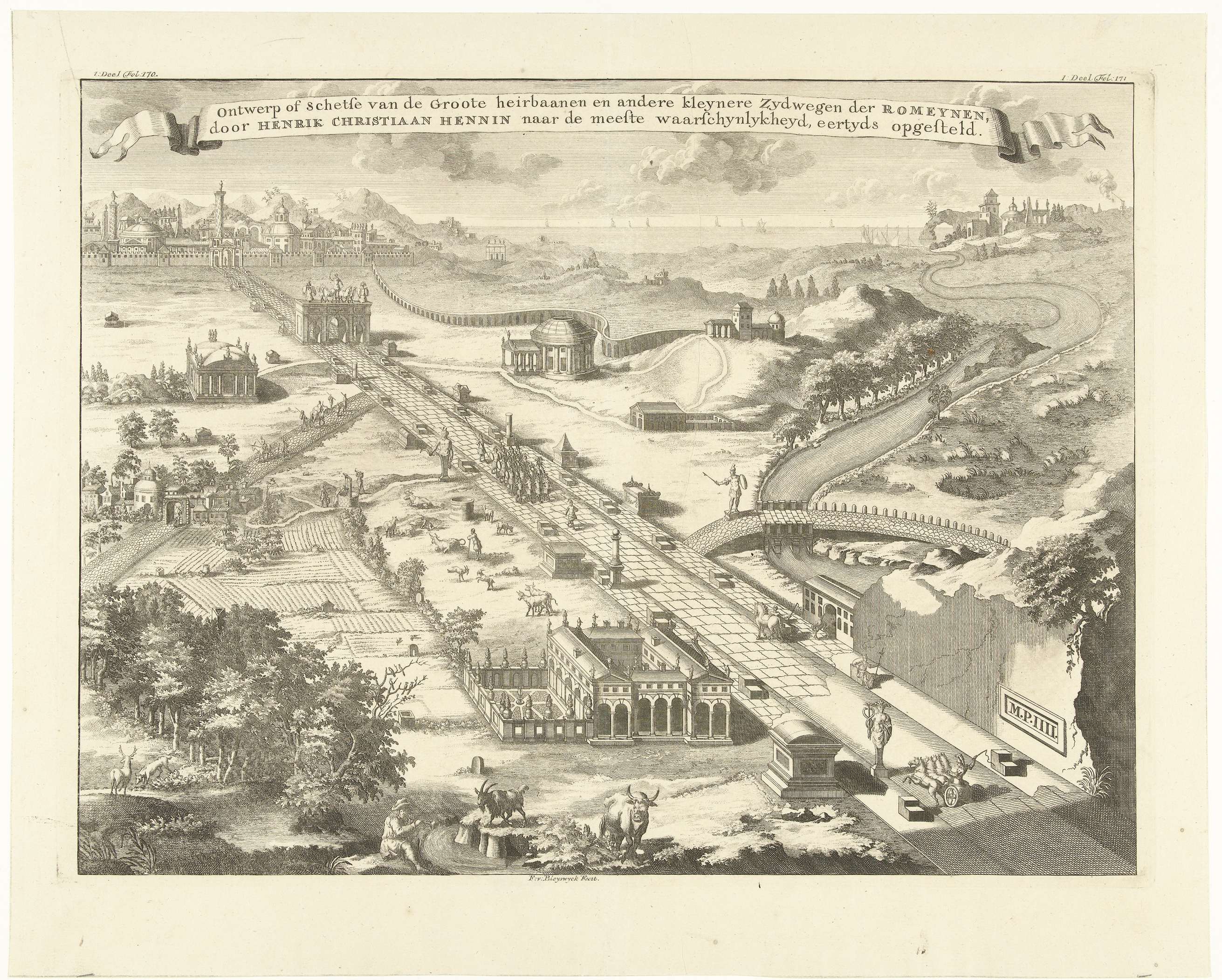 Ontwerp voor Romeinse heerweg (heirbaan) met grafmon...