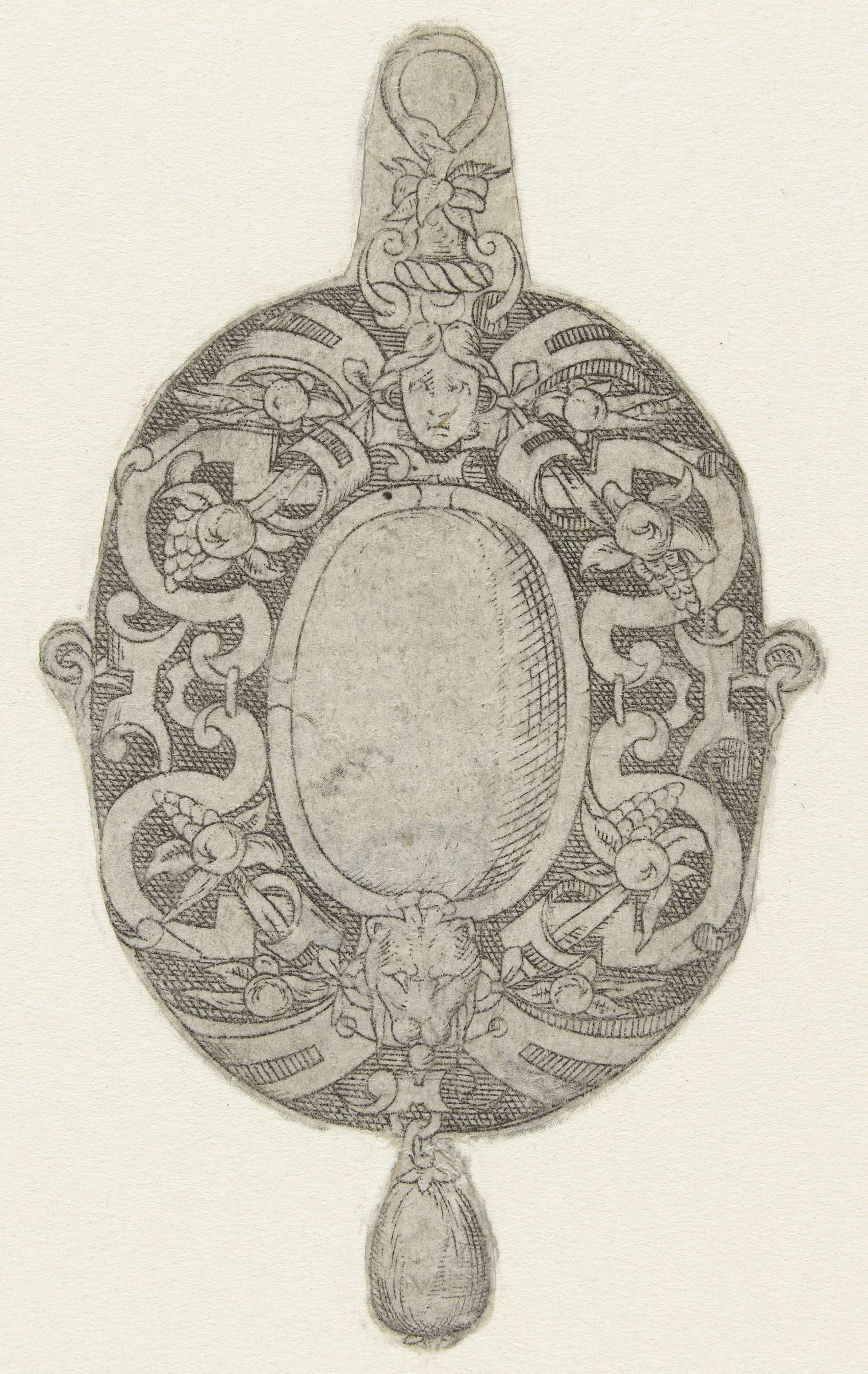 Ovale hanger met een steen in een omlijsting van rol...