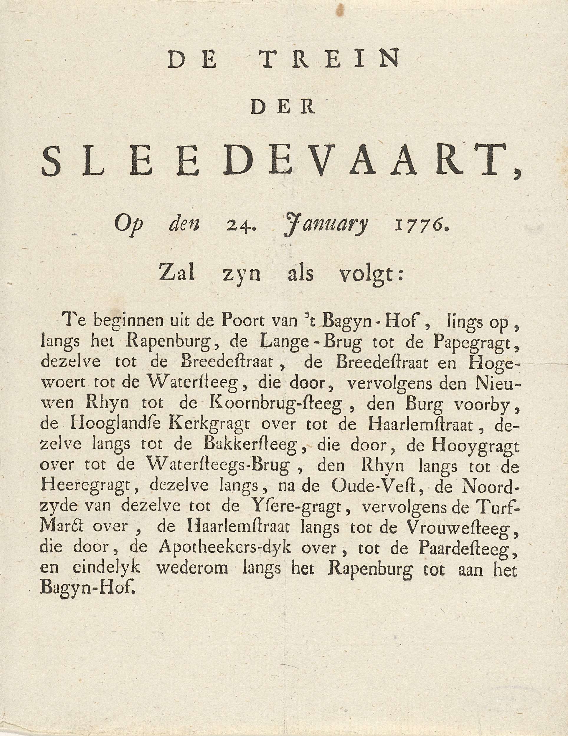 Bericht over de route van de sledevaart, 1776