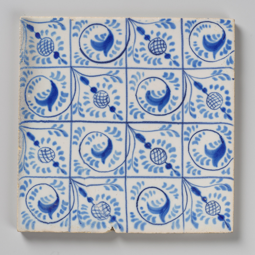 tegel van aardewerk met tinglazuur, voorstellende: m...