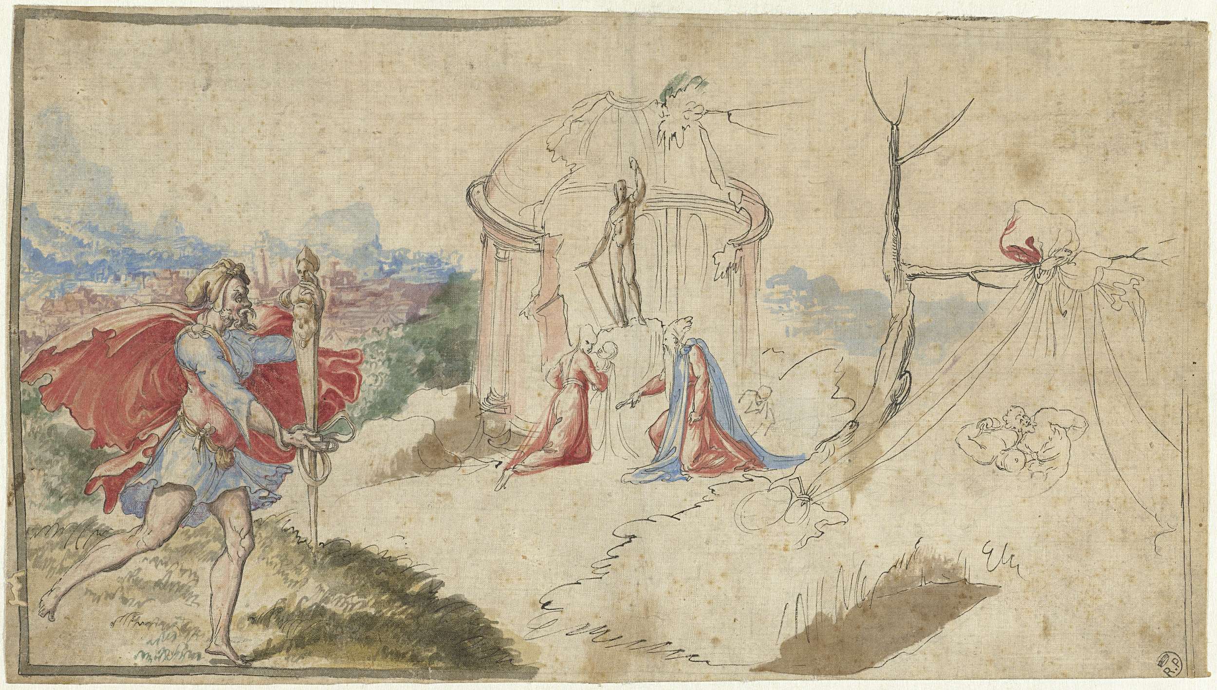Mythologische scène (Aeneas ontvlucht Troje?)