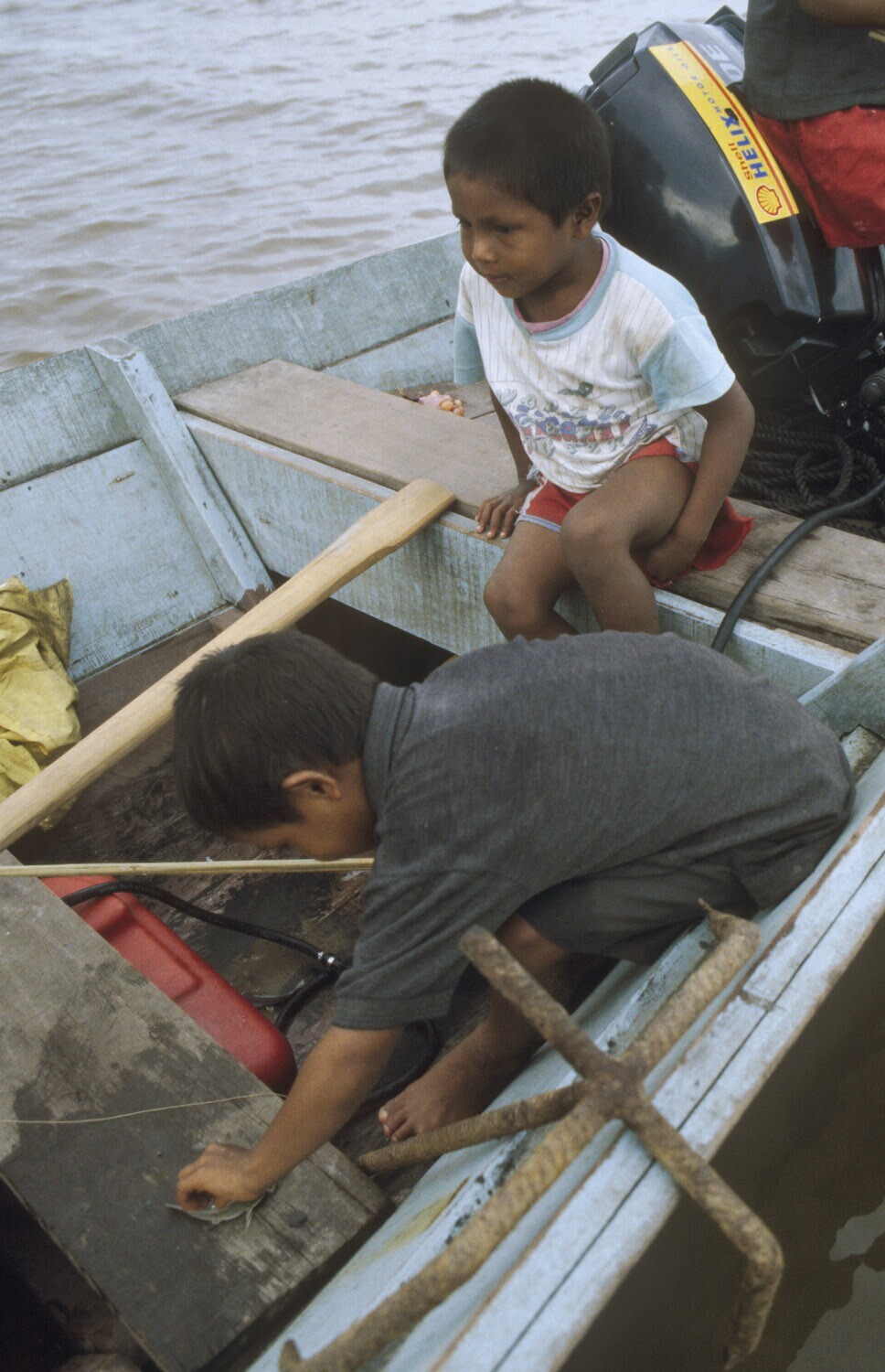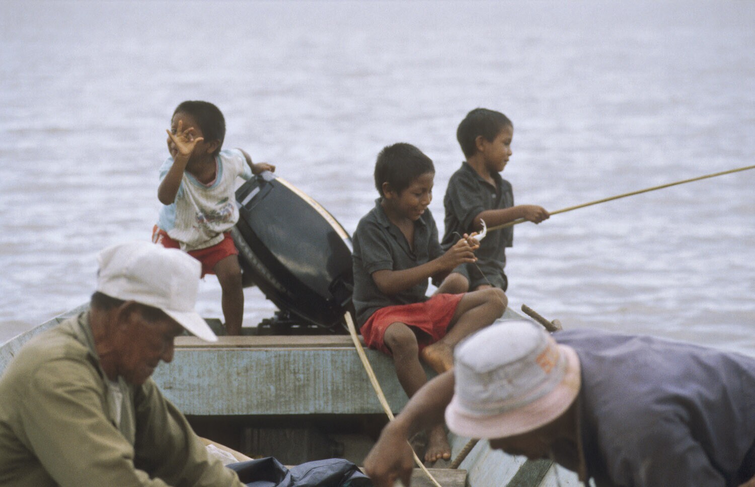 Galibi, Marowijnerivier; kinderen op vissersboot
