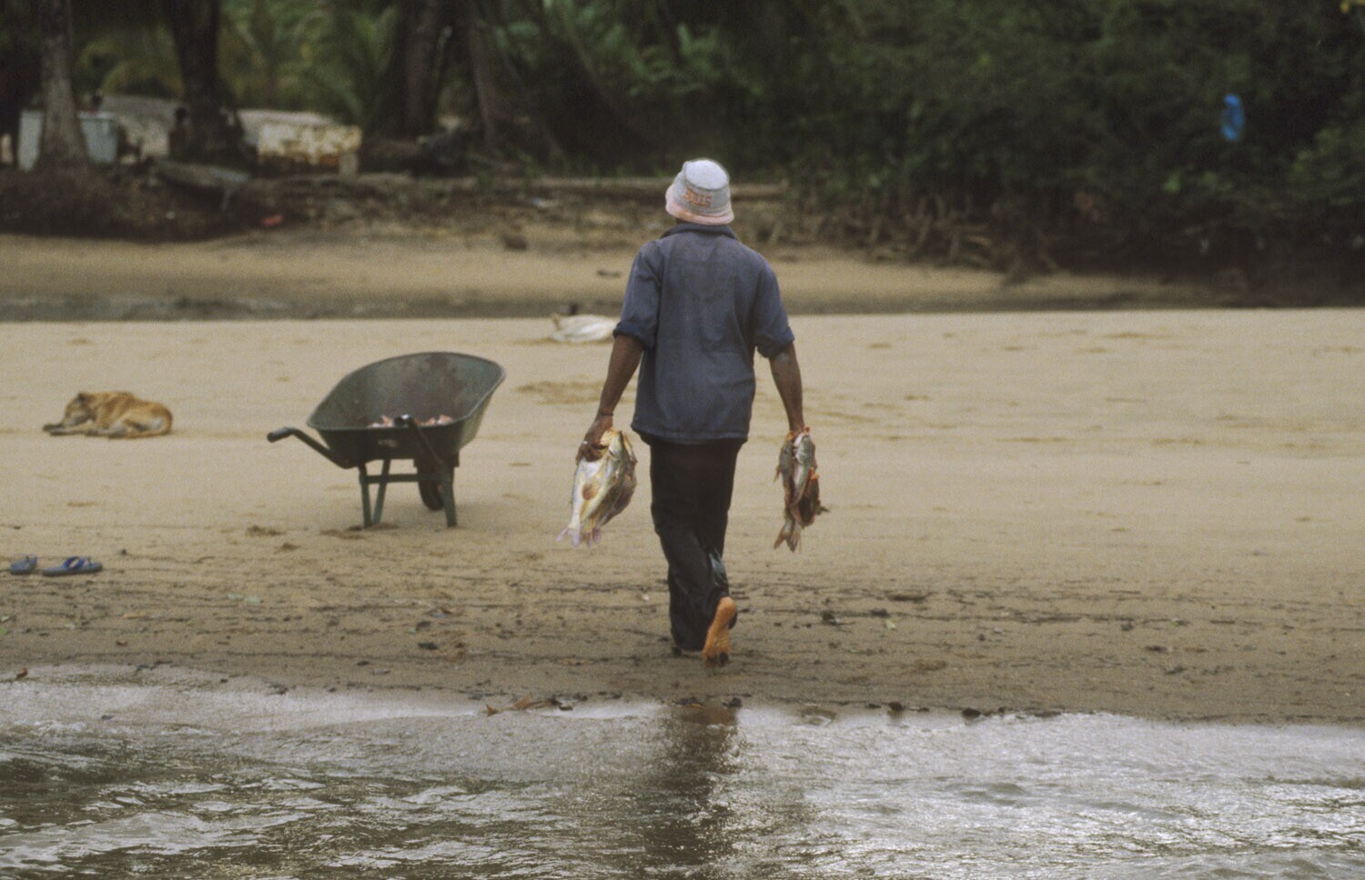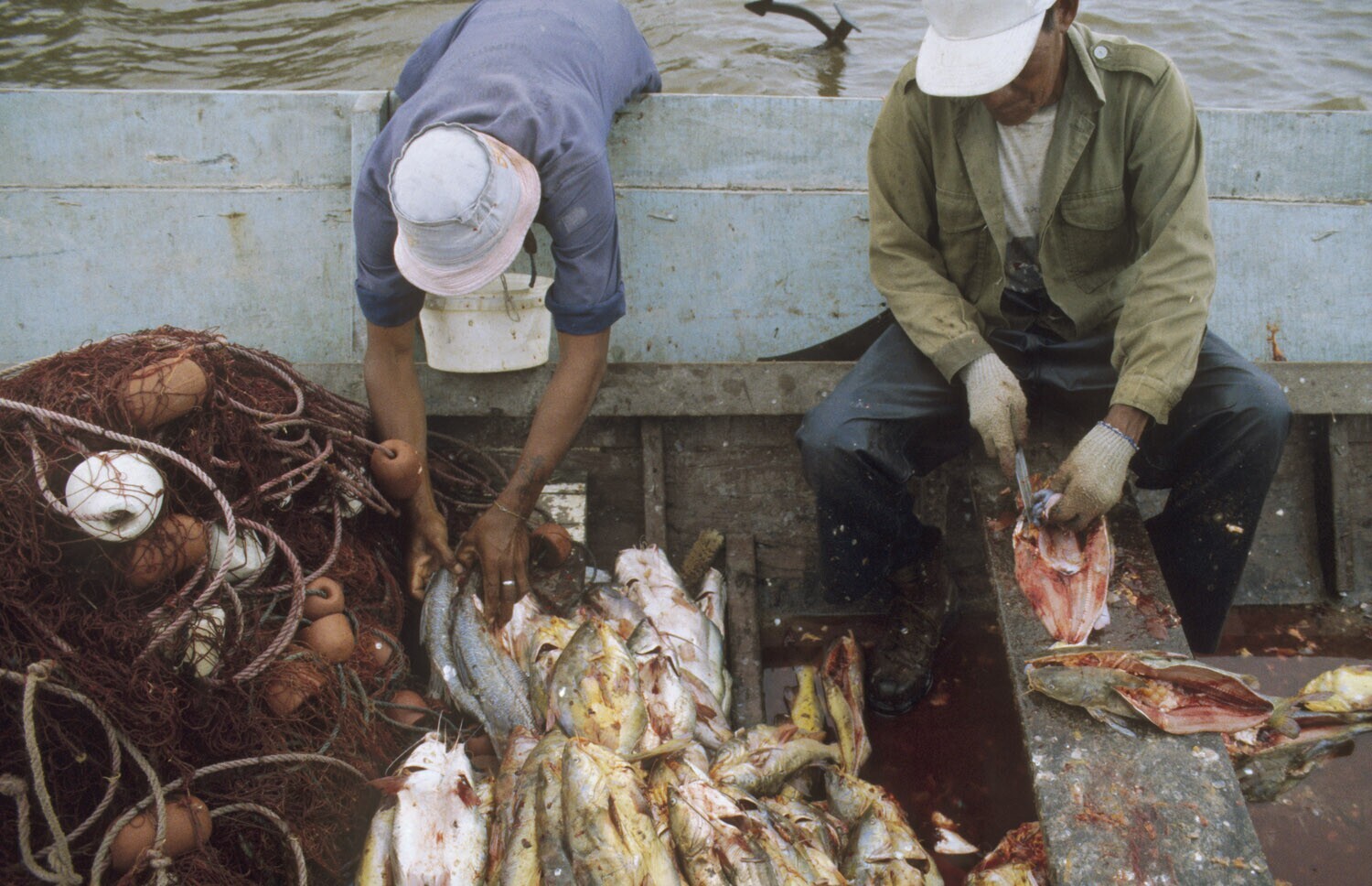 Galibi, Marowijnerivier; net schoongemaakte vis word...
