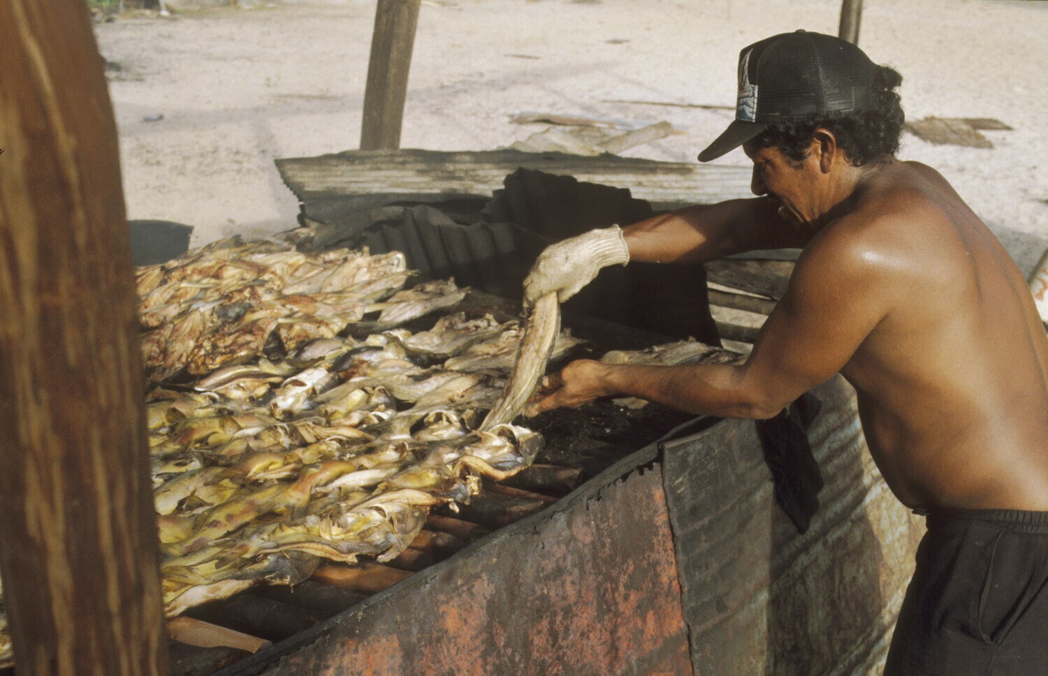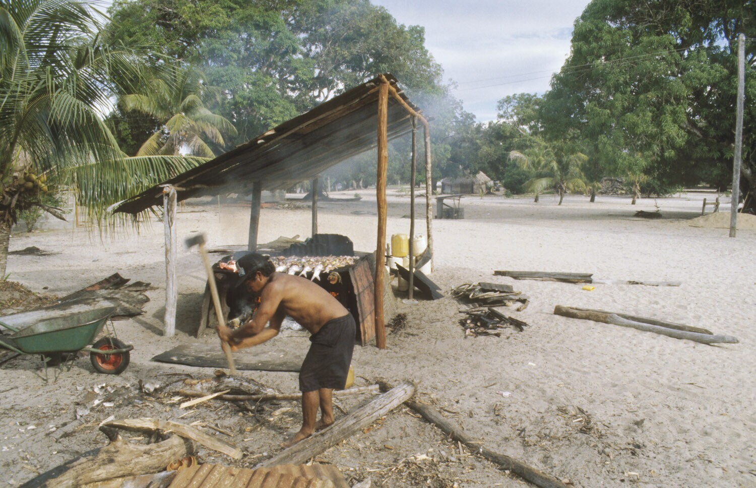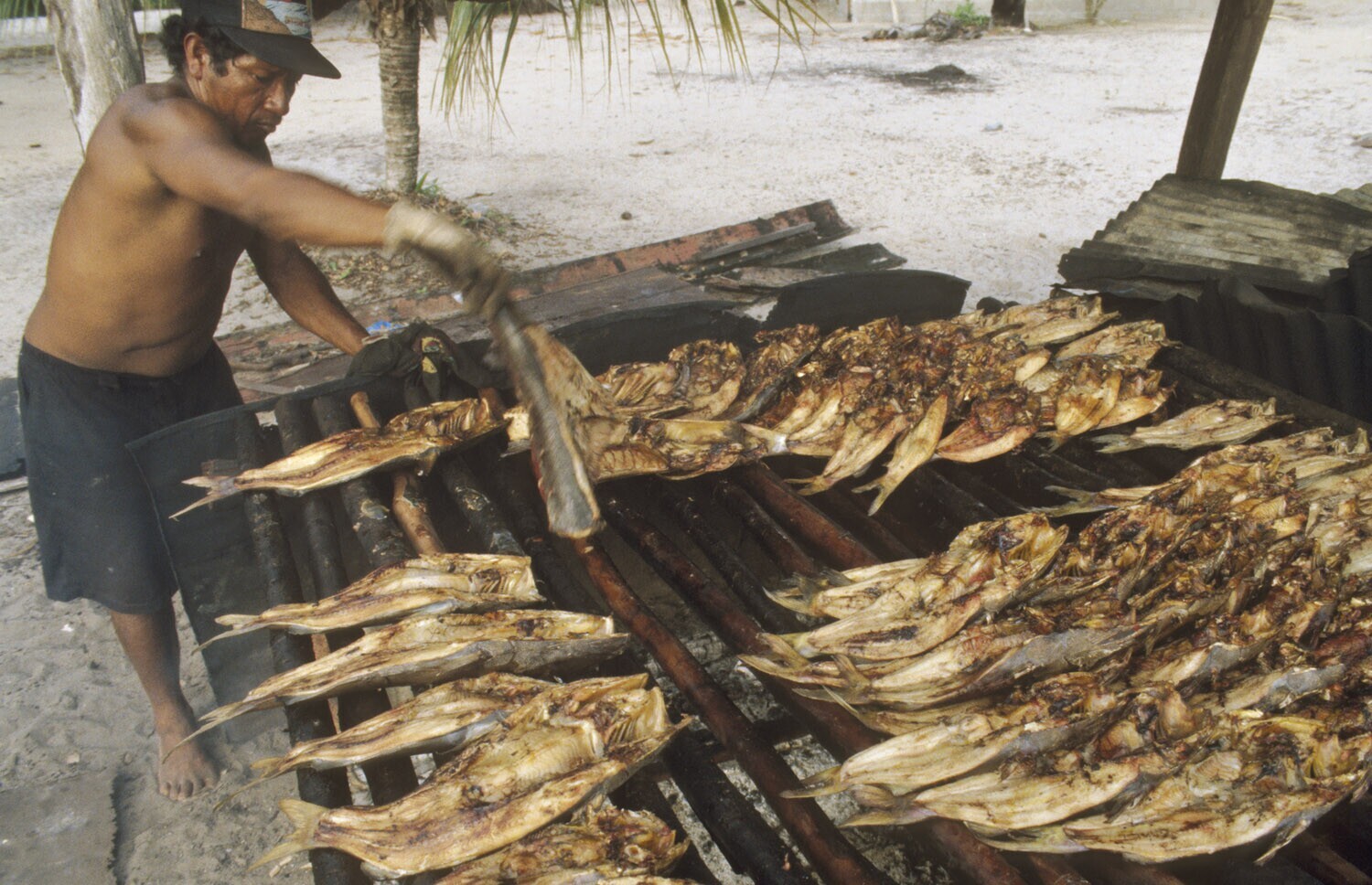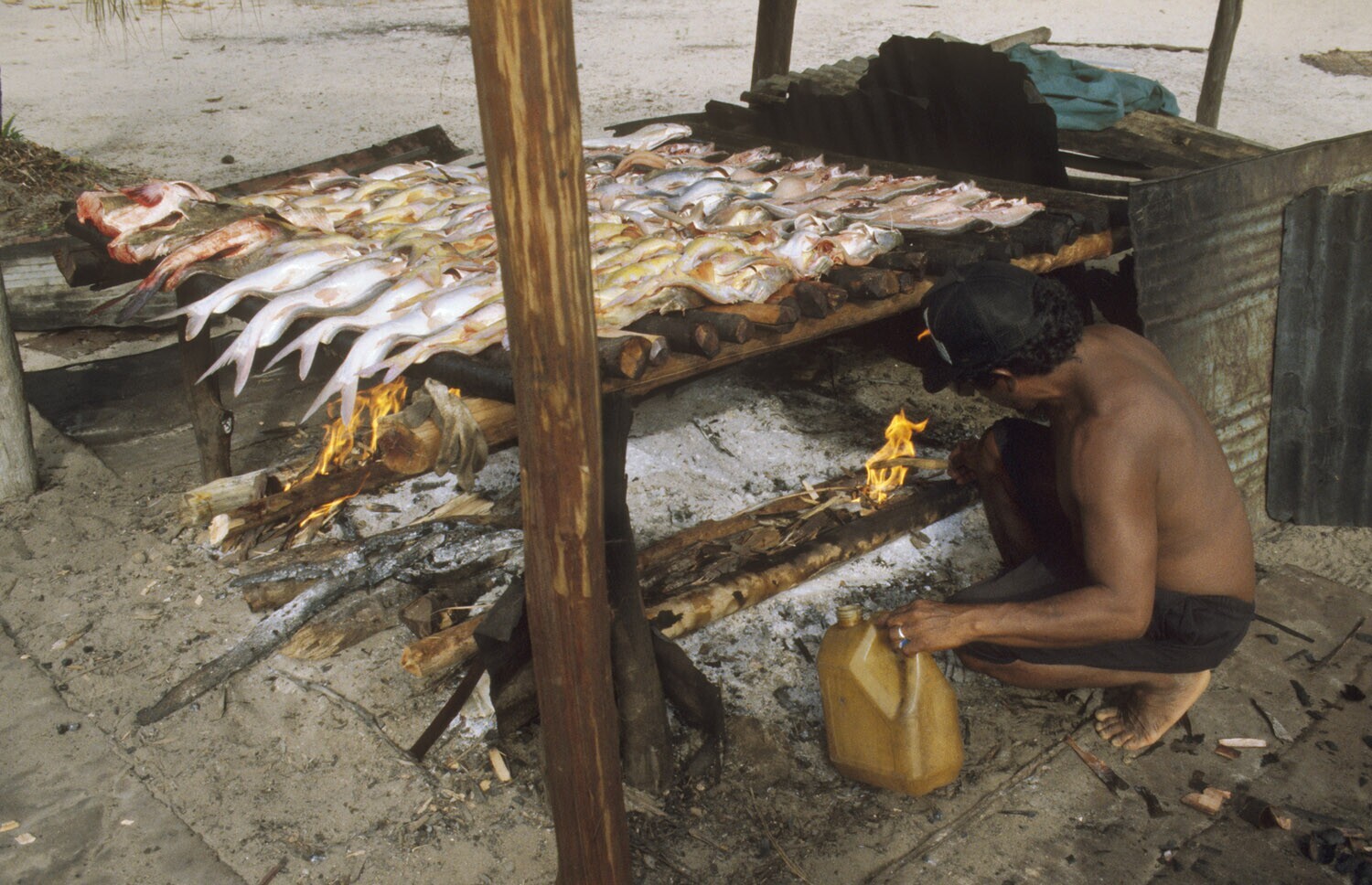 Galibi, Marowijnerivier; roken van vis ten behoeve v...