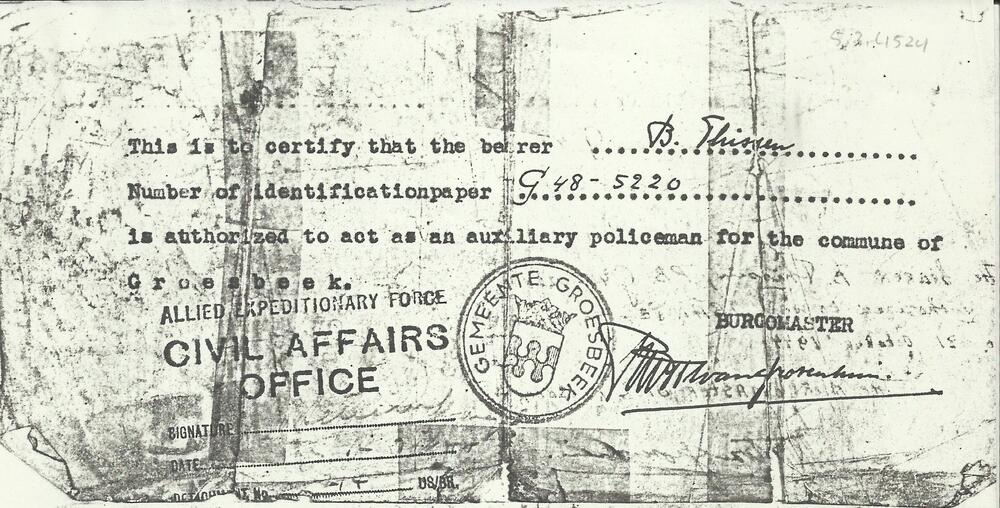 Kopie permit B.J. Thissen 21 oct. 1944