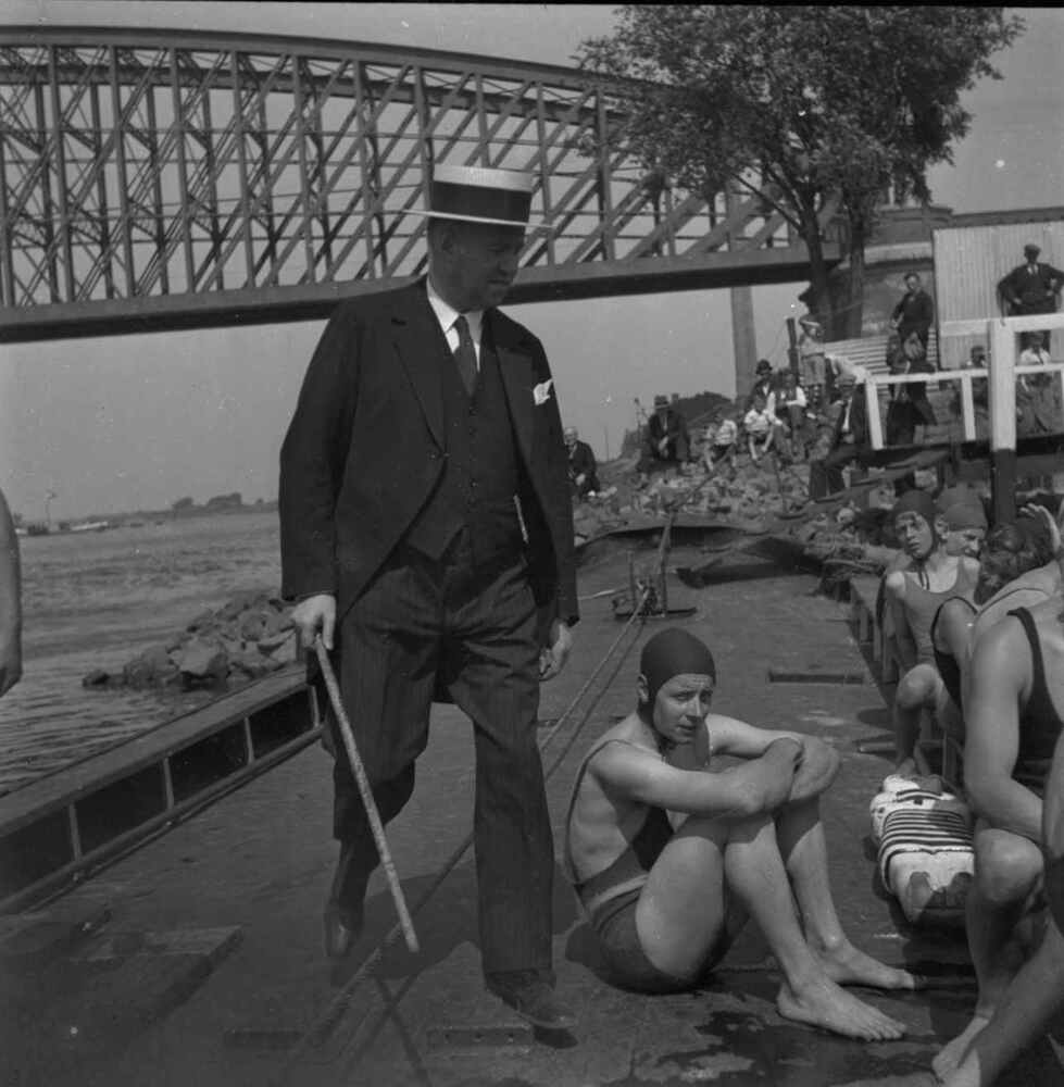 Foto, voorstellende de opening van het nieuwe zwemba...