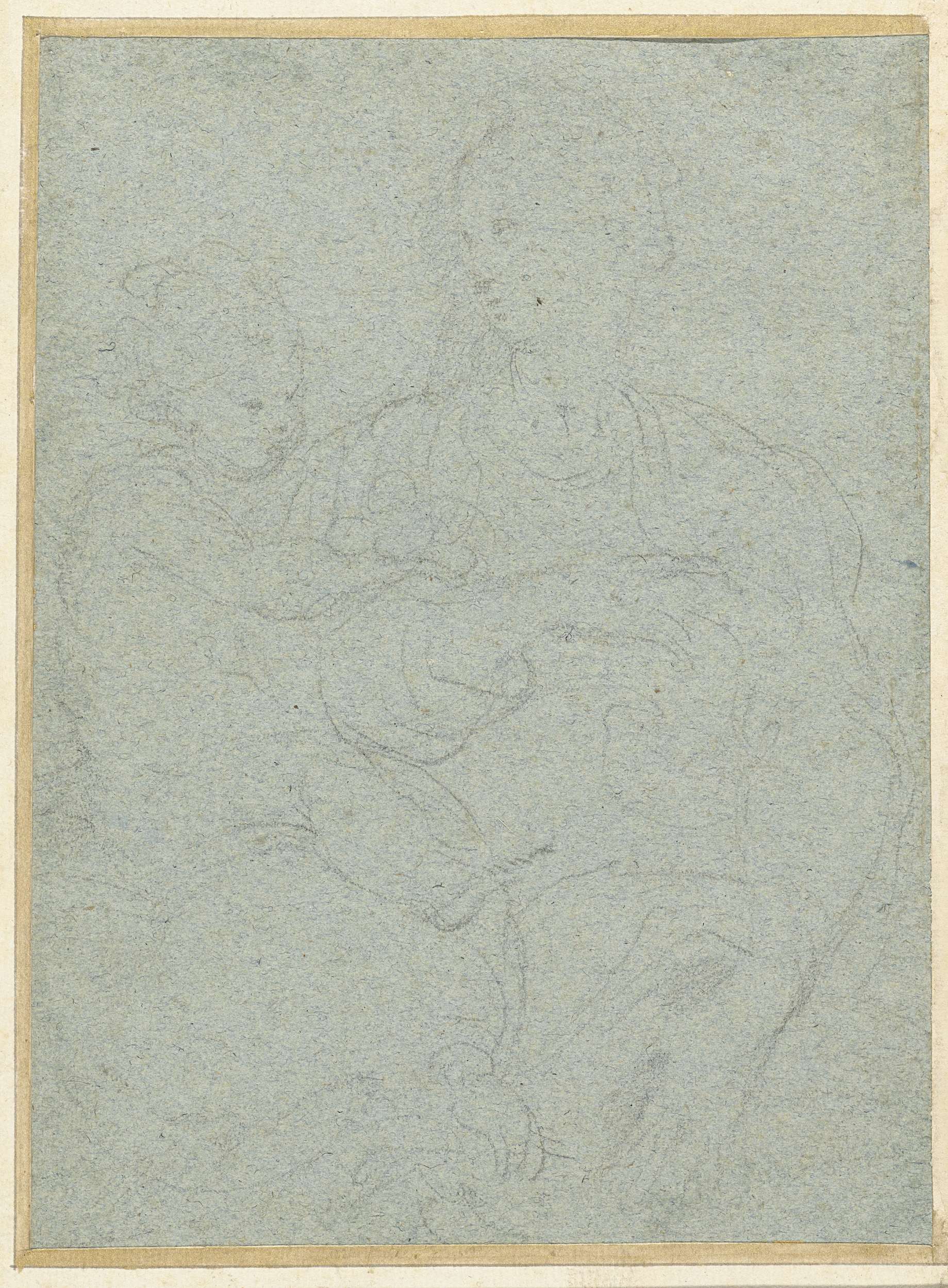 Op stoel zittende vrouw en vrouw met waaier op de ru...