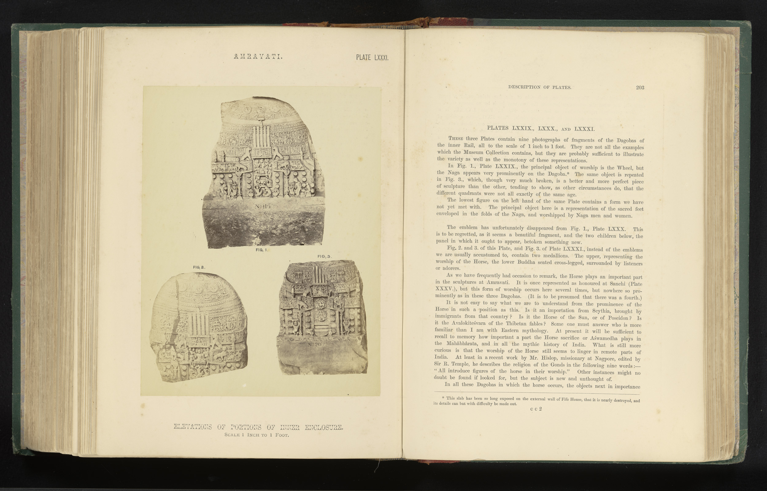 Fragments of two pillars, Amaravati, Andhra Pradesh,...