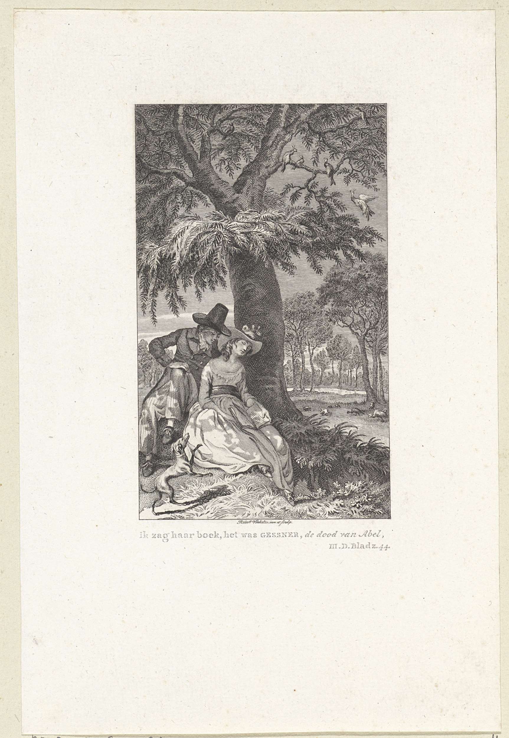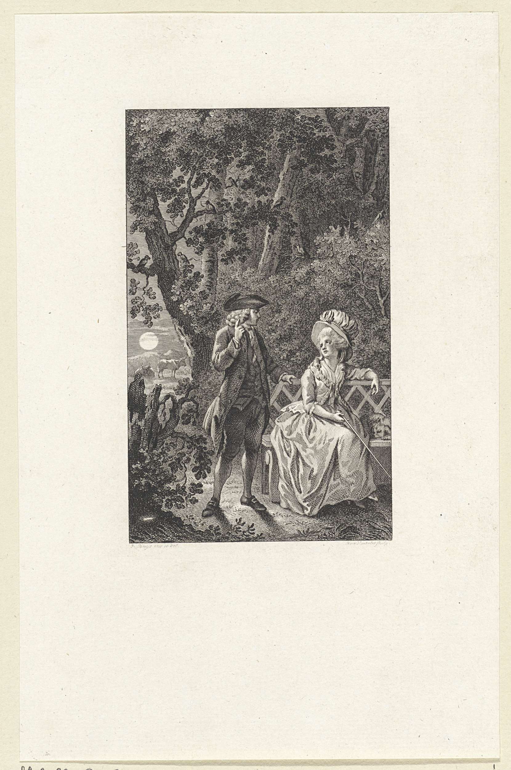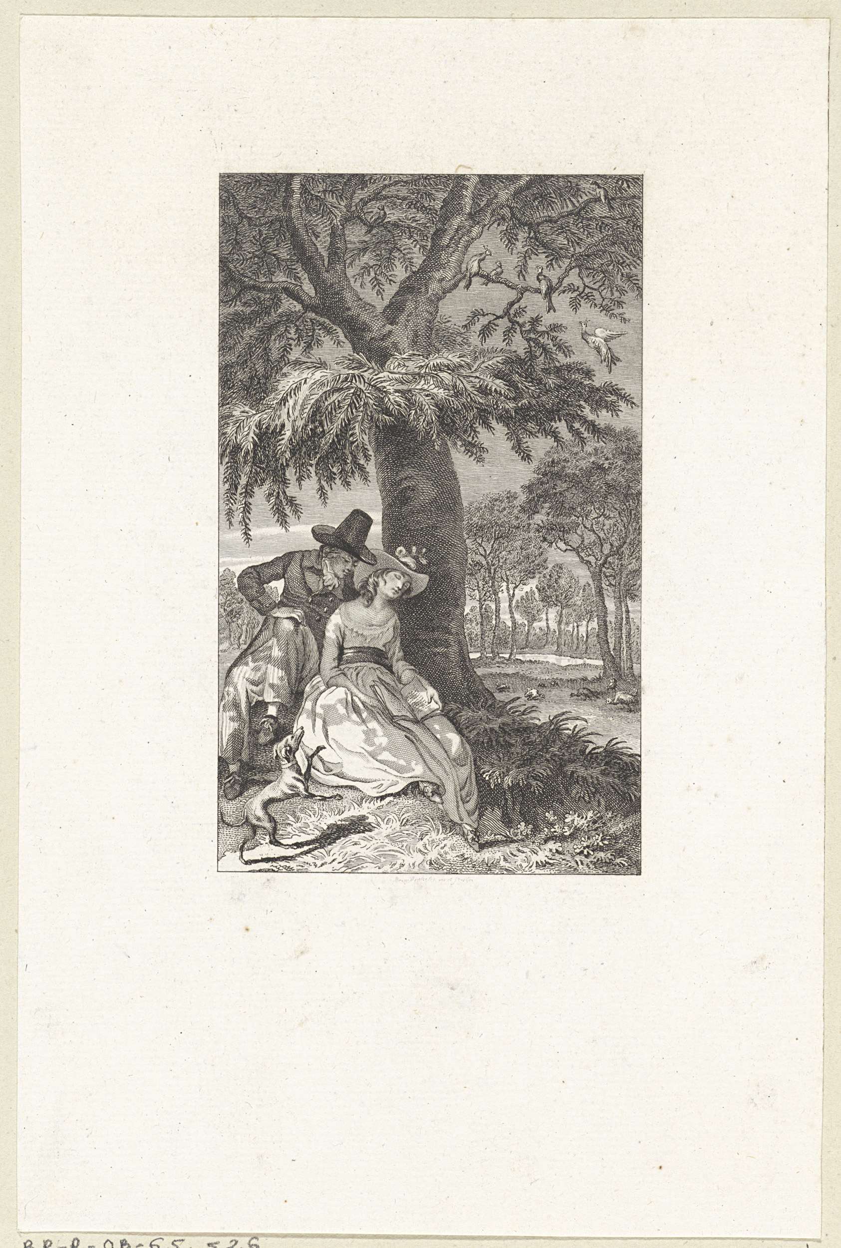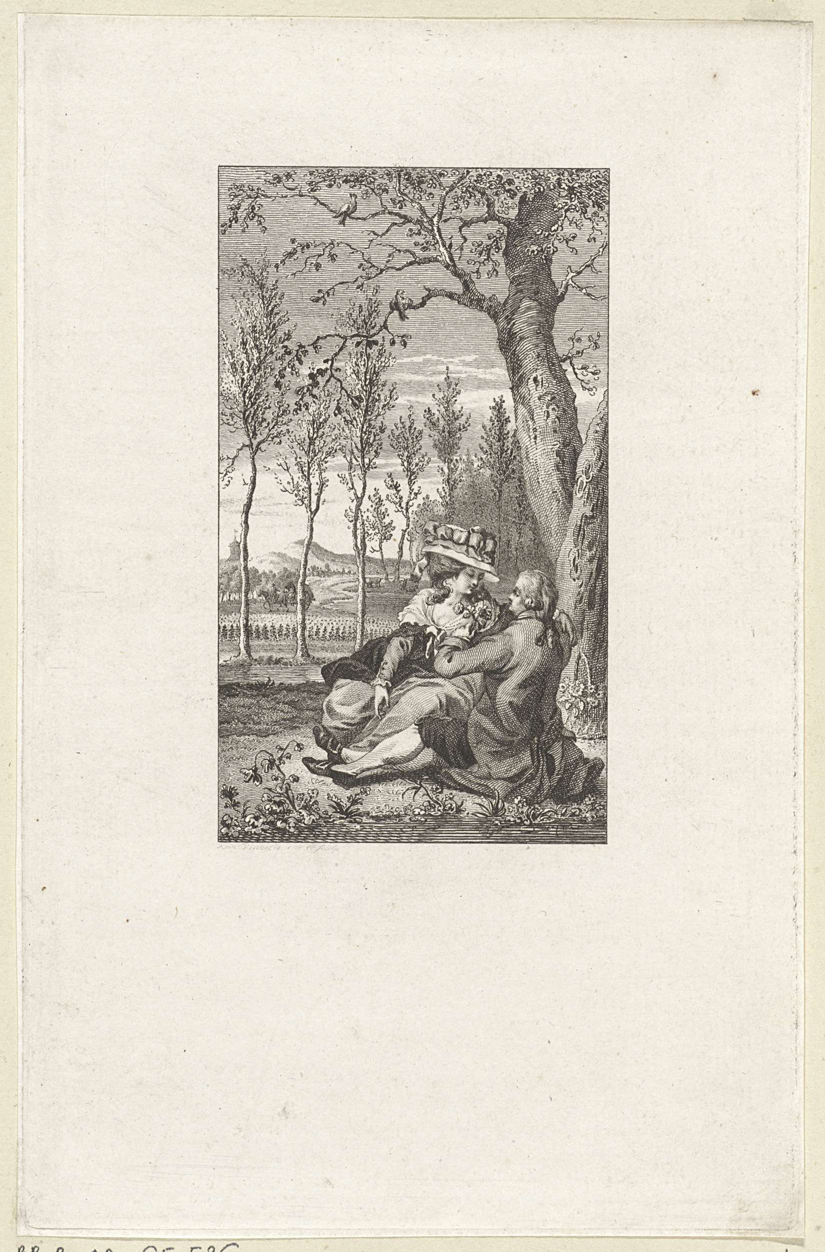 Landschap met een paar in omhelzing onder een boom