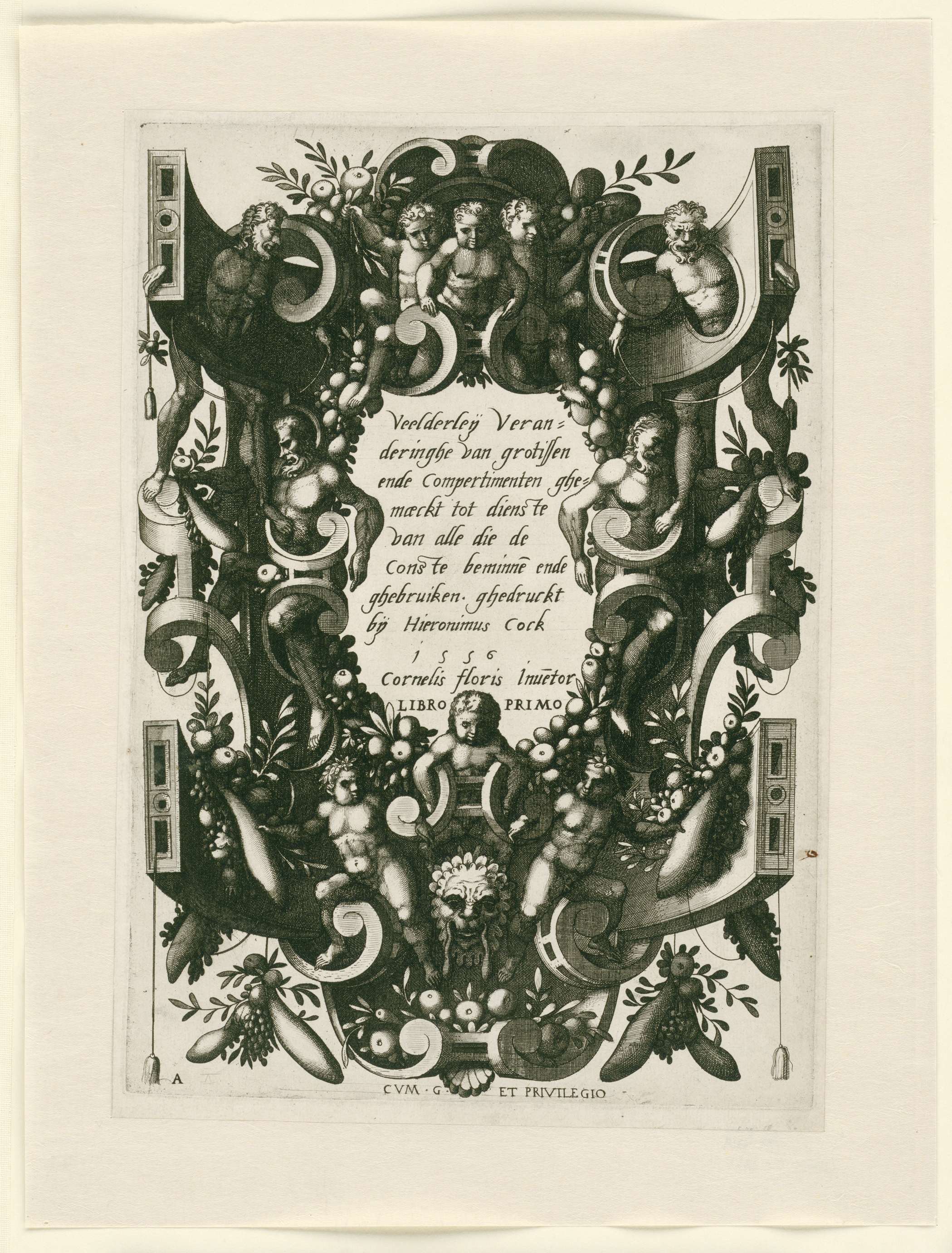 Cartouche in omlijsting van rolwerk met kindertjes, ...