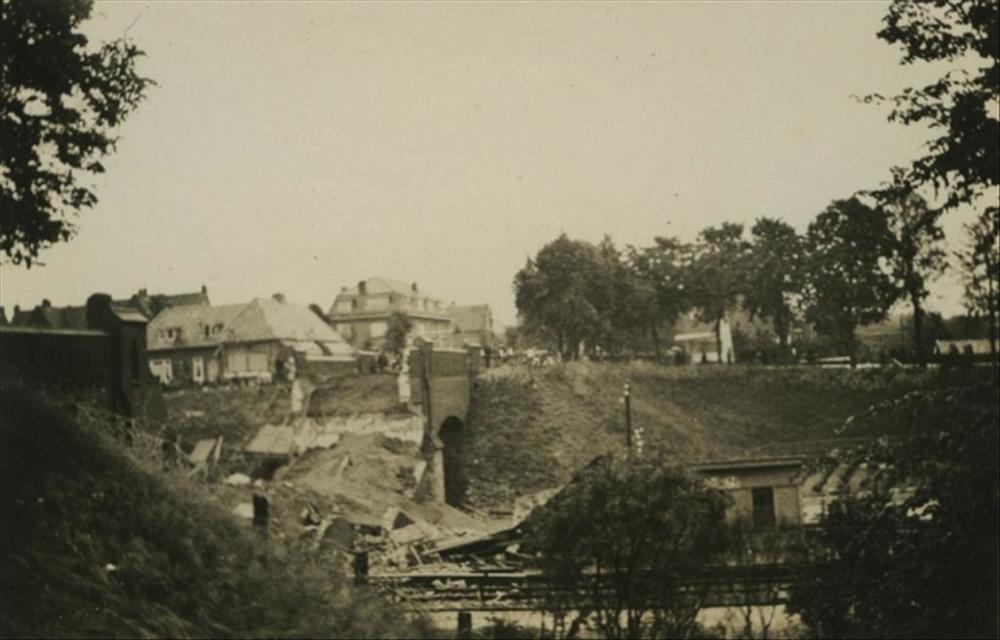 opgeblazen brug over spoorlijn