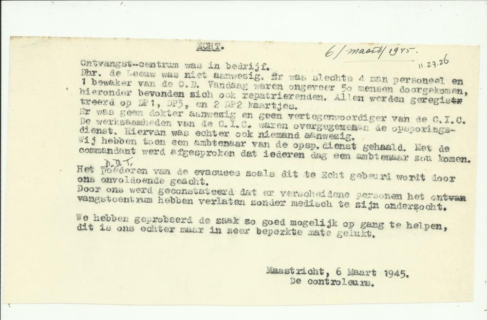 Rapport van de wacht van 3 tot 4 Mei 1945