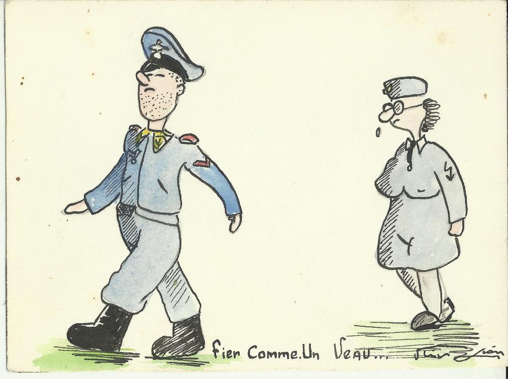 afbeelding van een soldaat met achter hem een vrouw ...