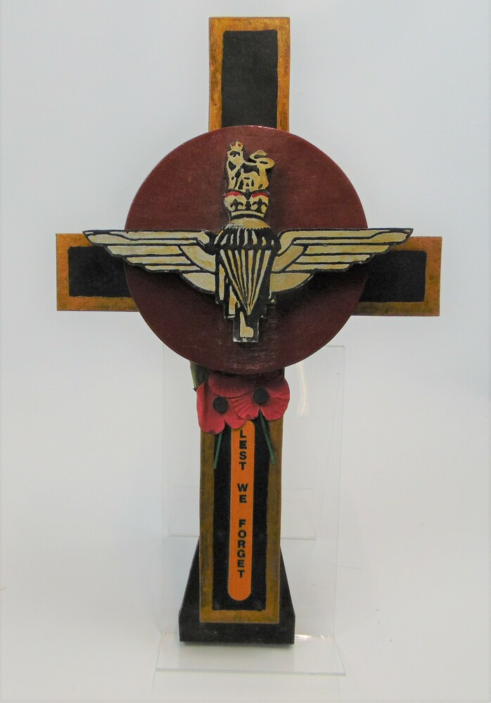 Houten kruis met daarop het embleem van de Britse pa...