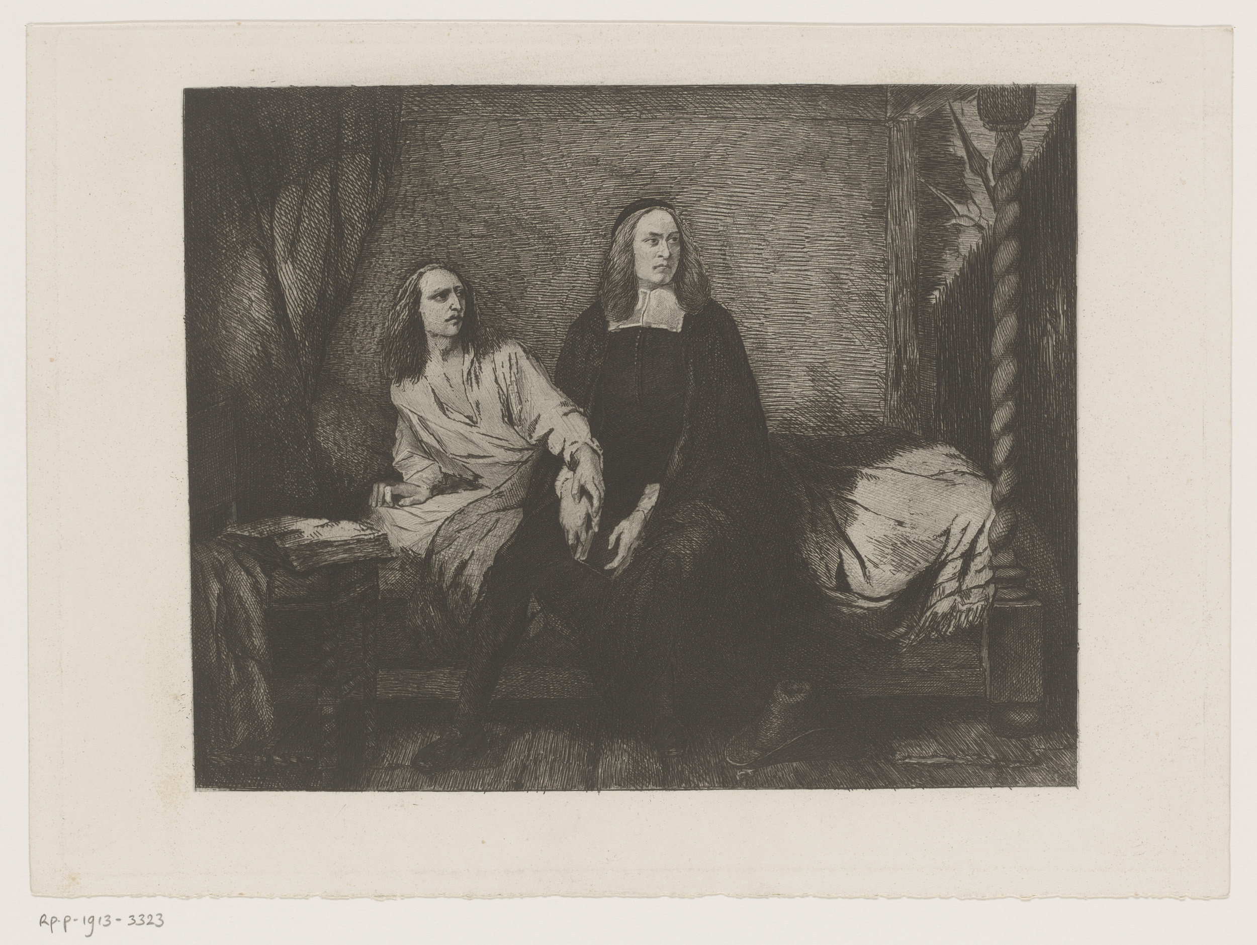 Gebroeders de Witt zittend op een bed in de gevangen...