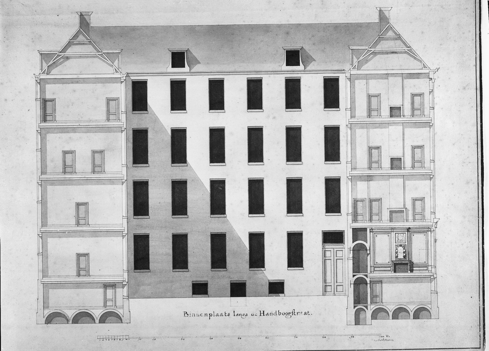 doorsnede naar Handboogstr. eerste plan ca.1783