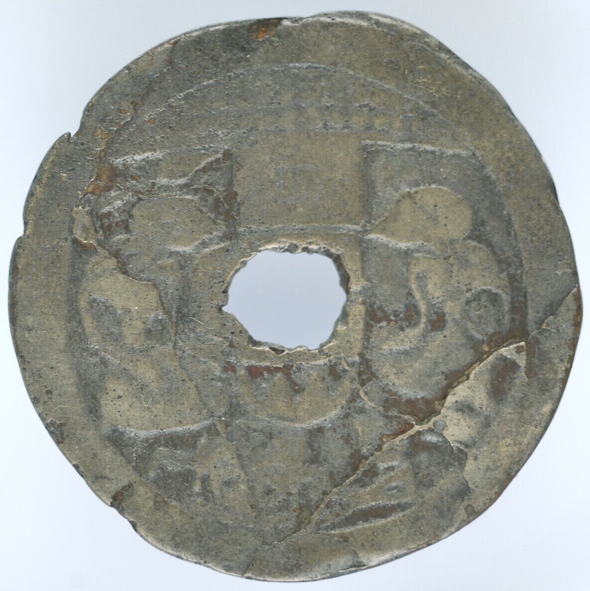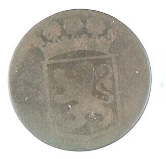 Koperen duit voor de V.O.C. met het wapen van Holland