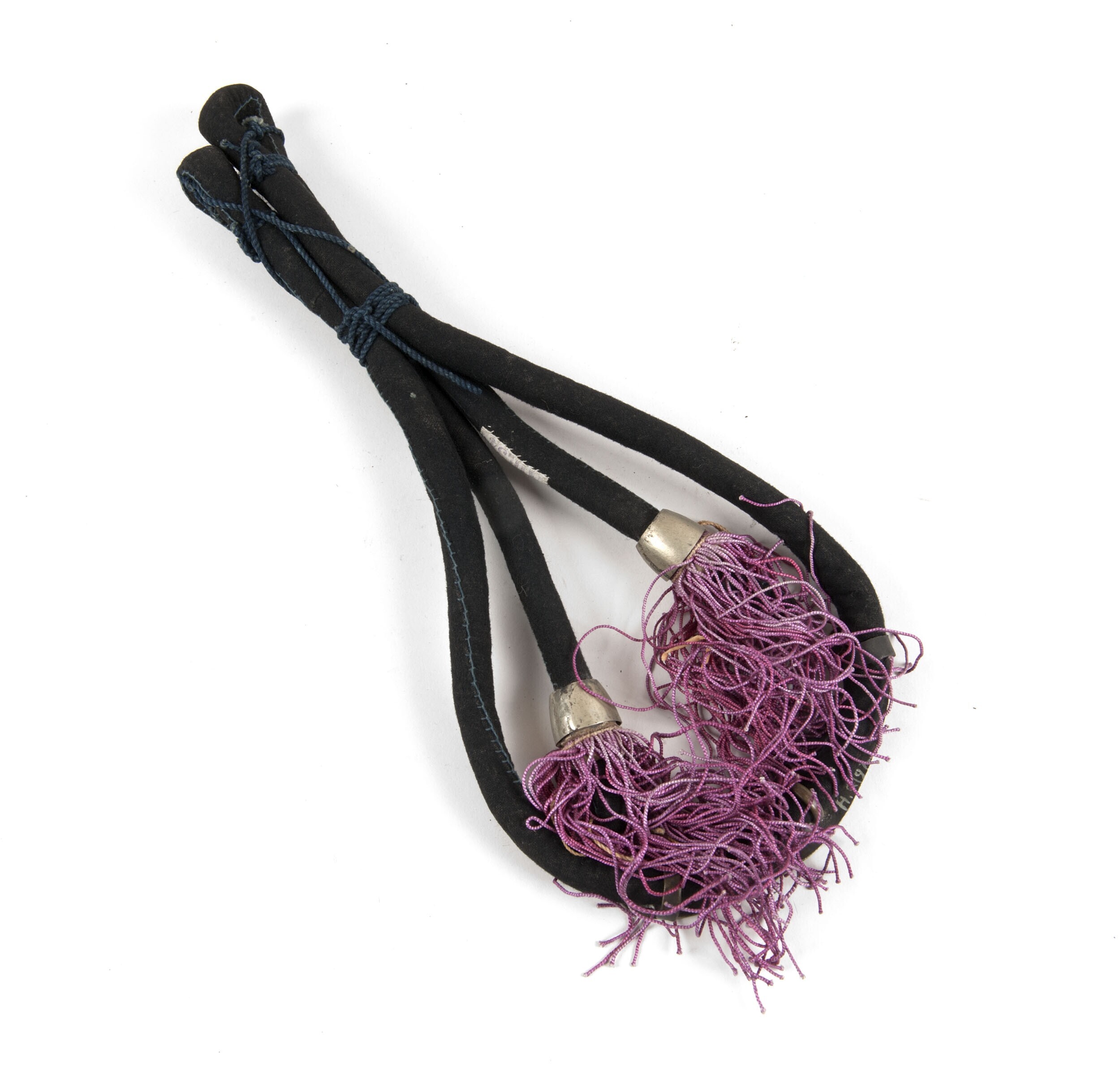 Een paar muiltjes van zwart fluweel met witte kraalw...