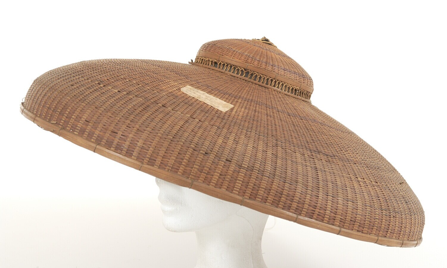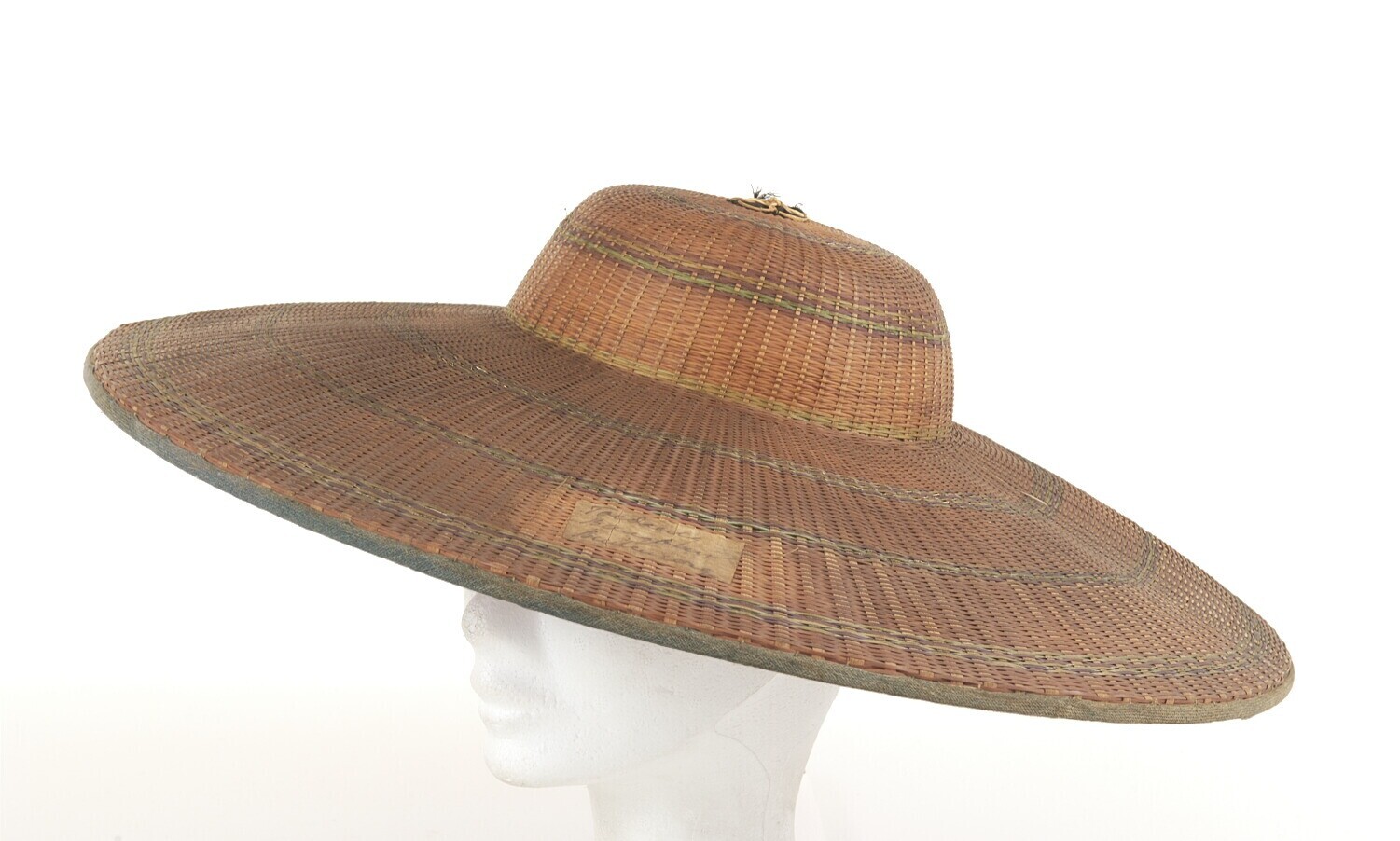 Gevlochten hoed van bamboe en rotan met voering van ...