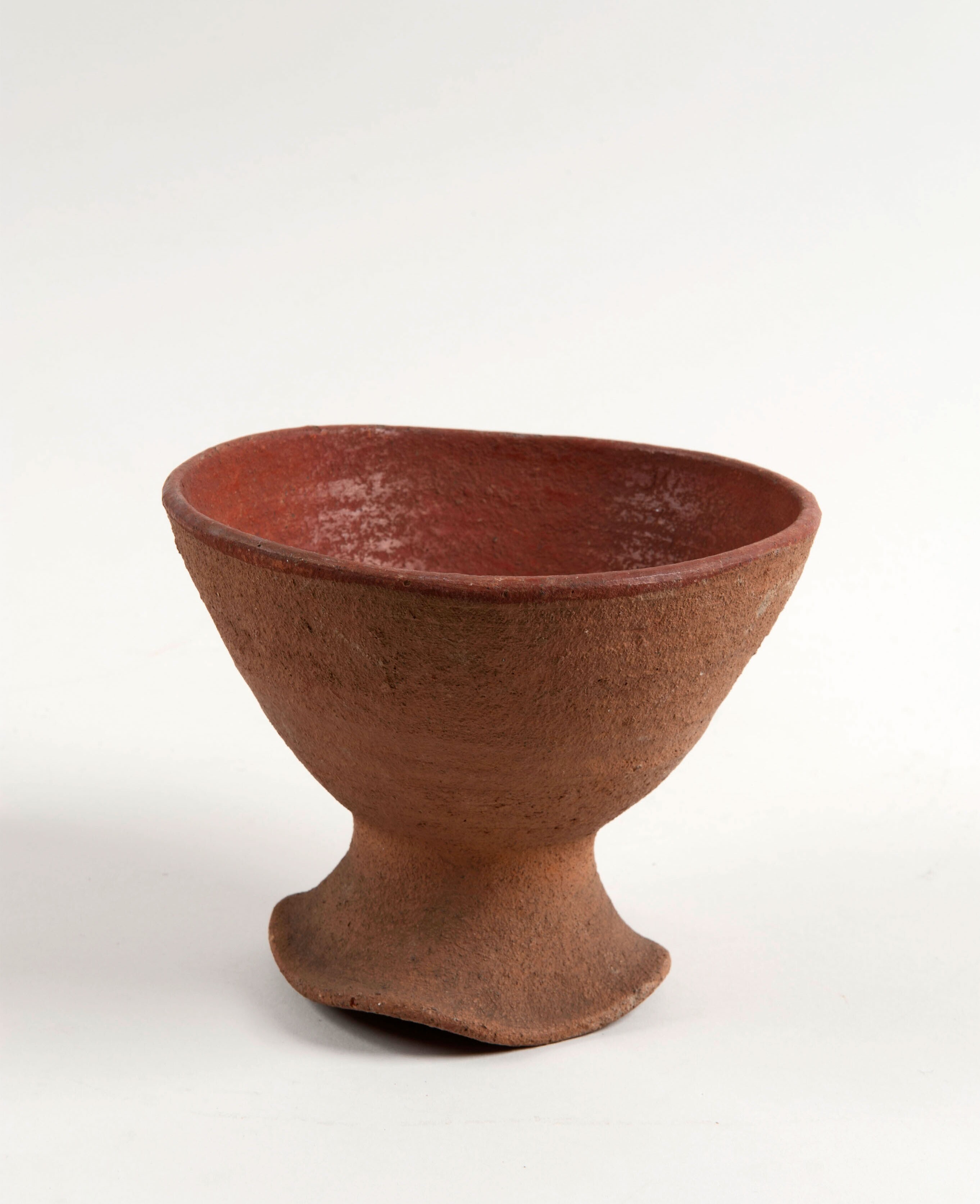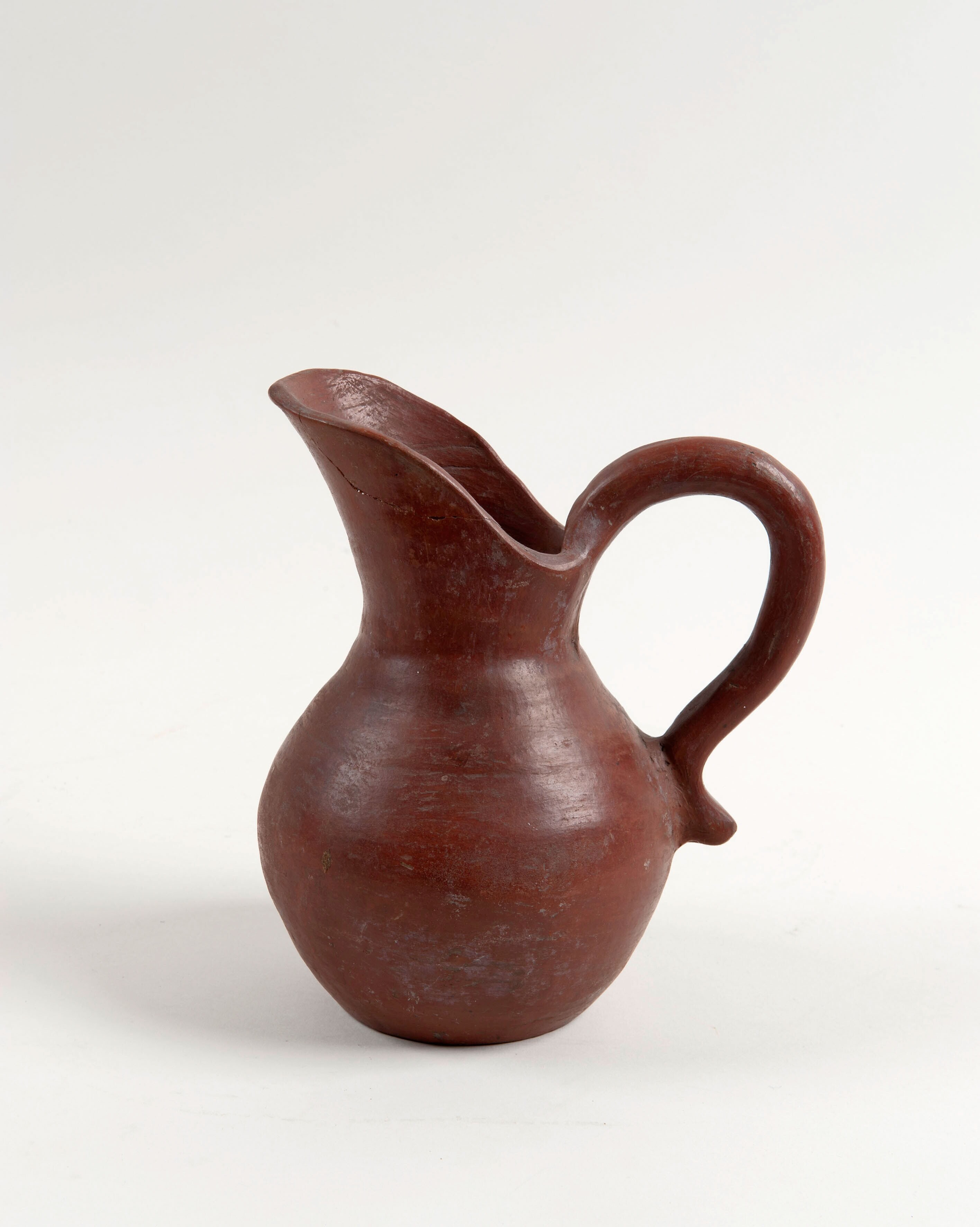 Aardewerken schenkkan in de vorm van een hoge melkkan