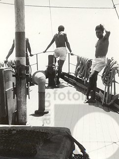 Asmatters aan boord van stoomschip.