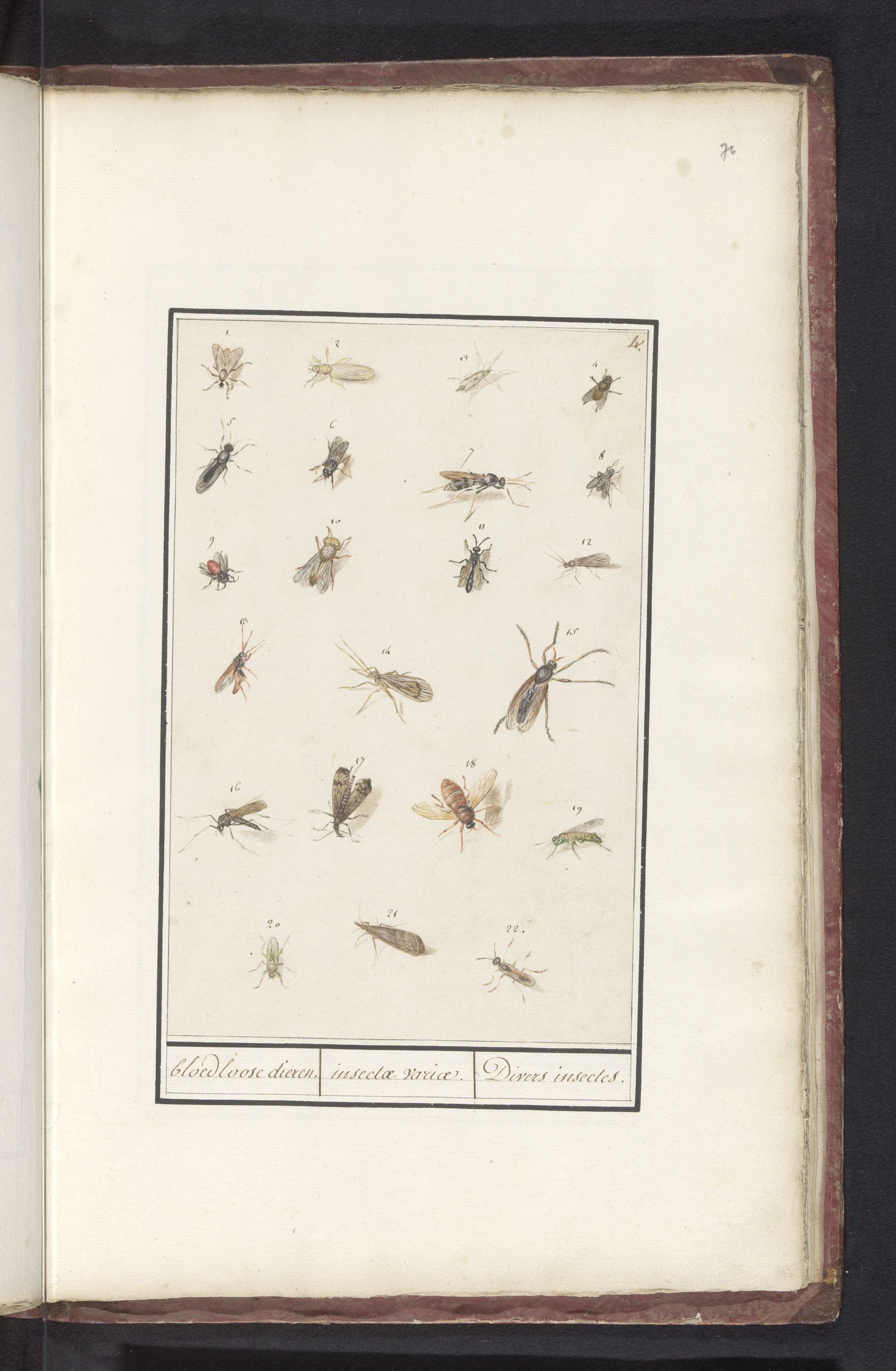 Blad met tweeëntwintig gevleugelde insecten