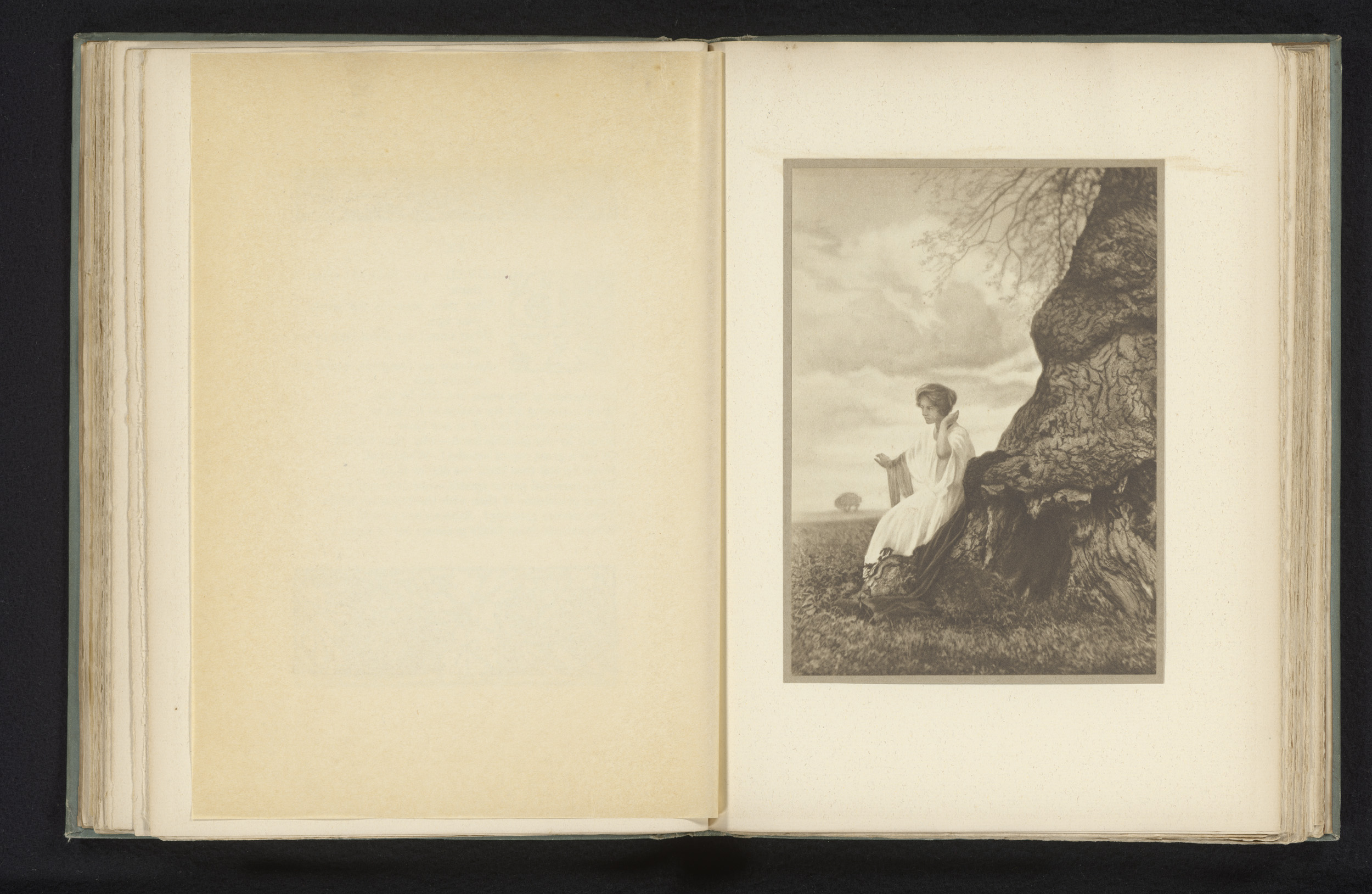 Vrouw zittend op de wortel van een boom