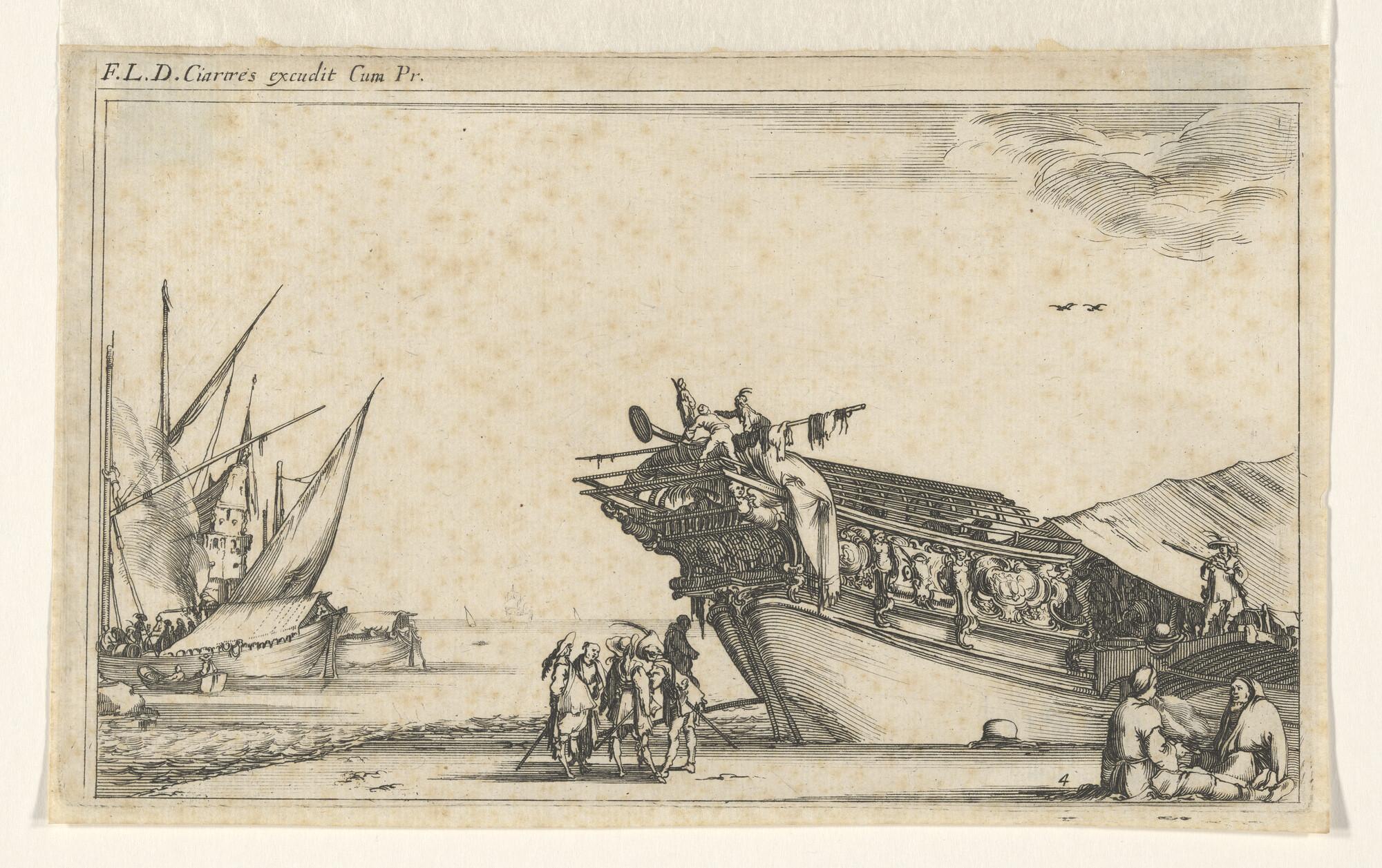 Scheepvaart op een rede: met rechts een oorlogsgalei