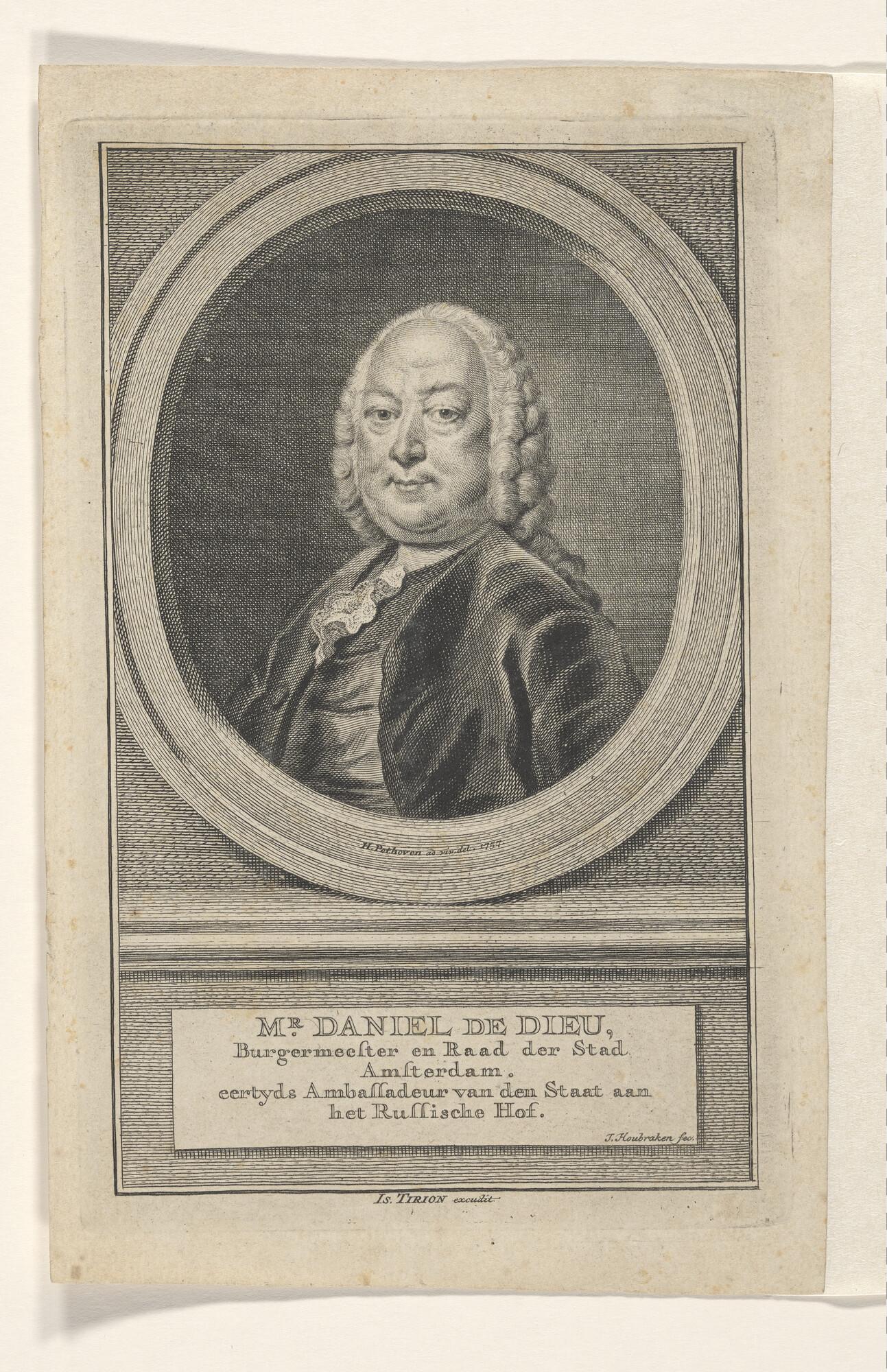 Portret van Ludolf Backhuysen, met daaronder een vie...