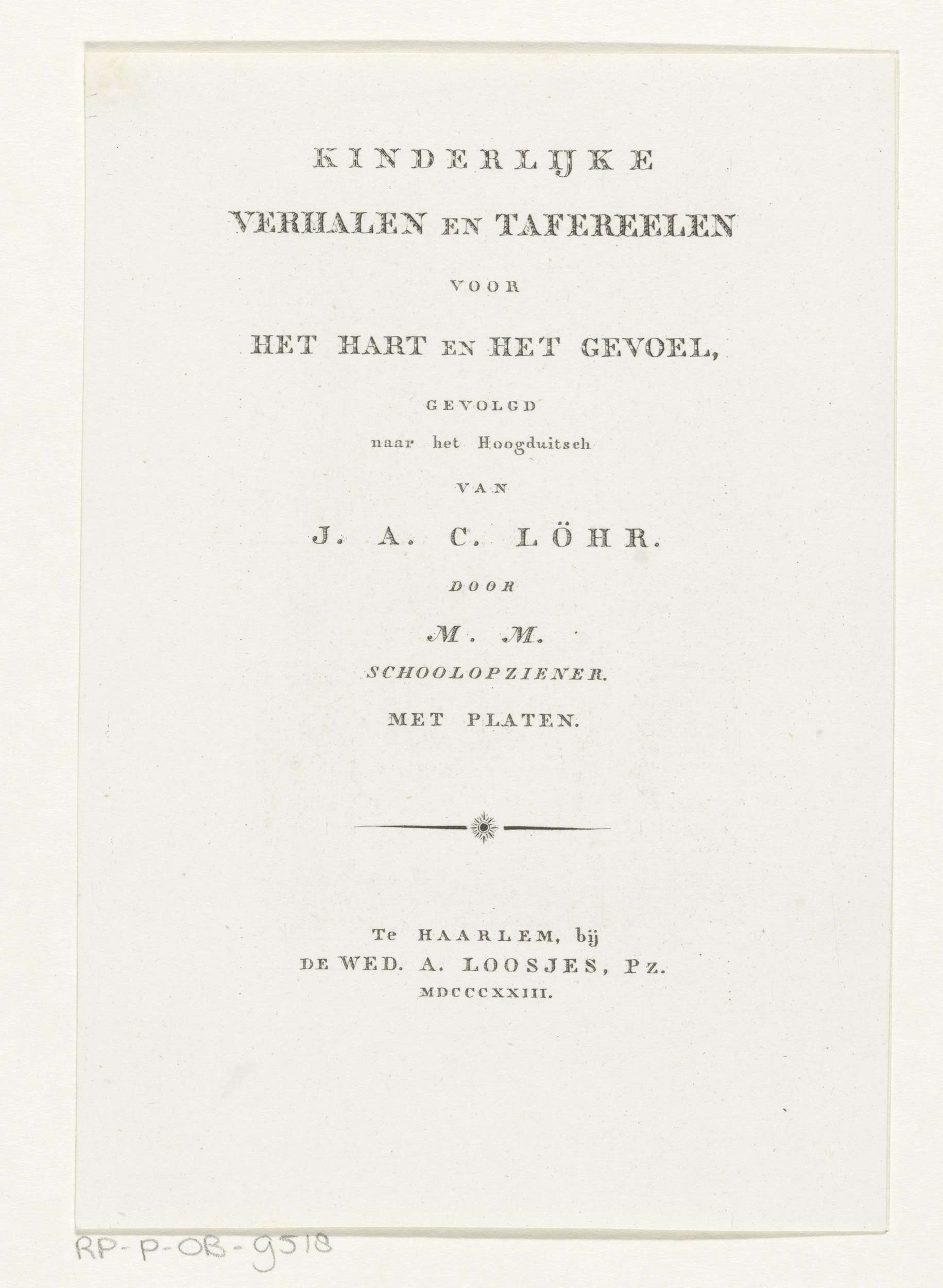 Titelpagina voor: J.A.C. Löhr, Kinderlijke verhalen ...
