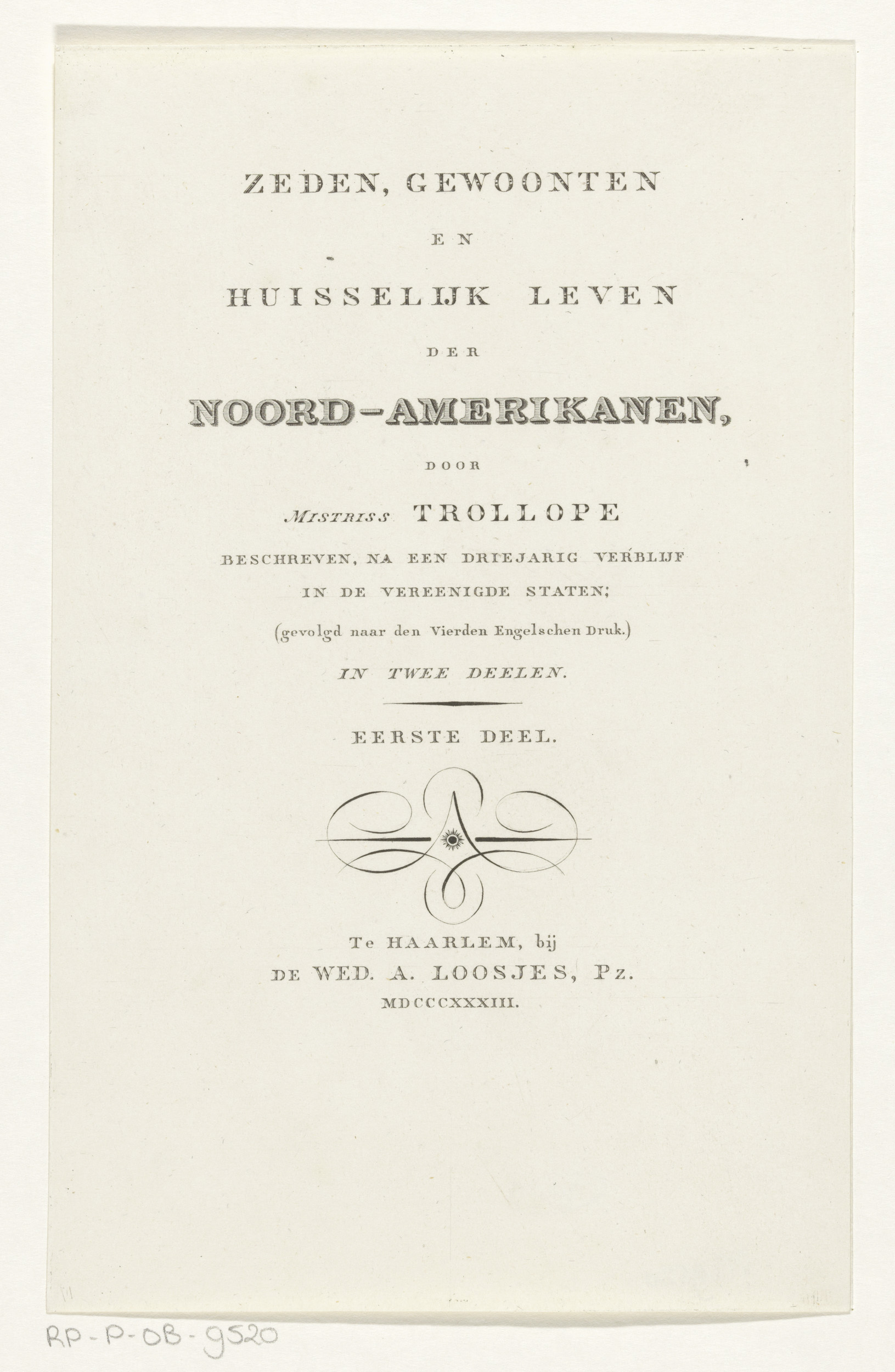 Titelpagina voor: Frances Milton Trollope, Zeden, ge...