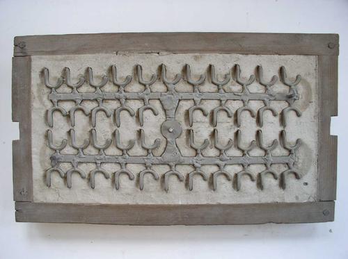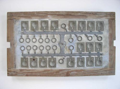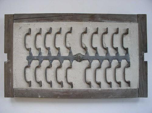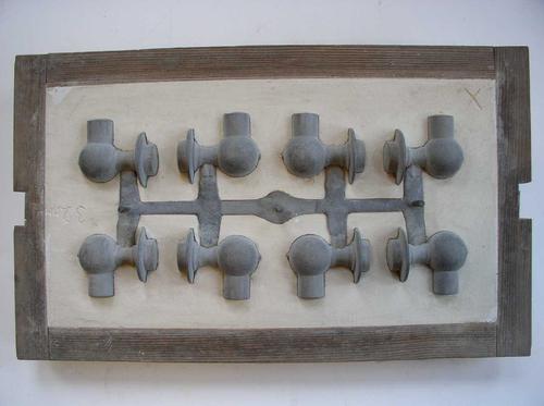 Gietmal met 4 stel tramcoupe deurkrukken.