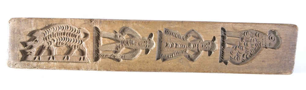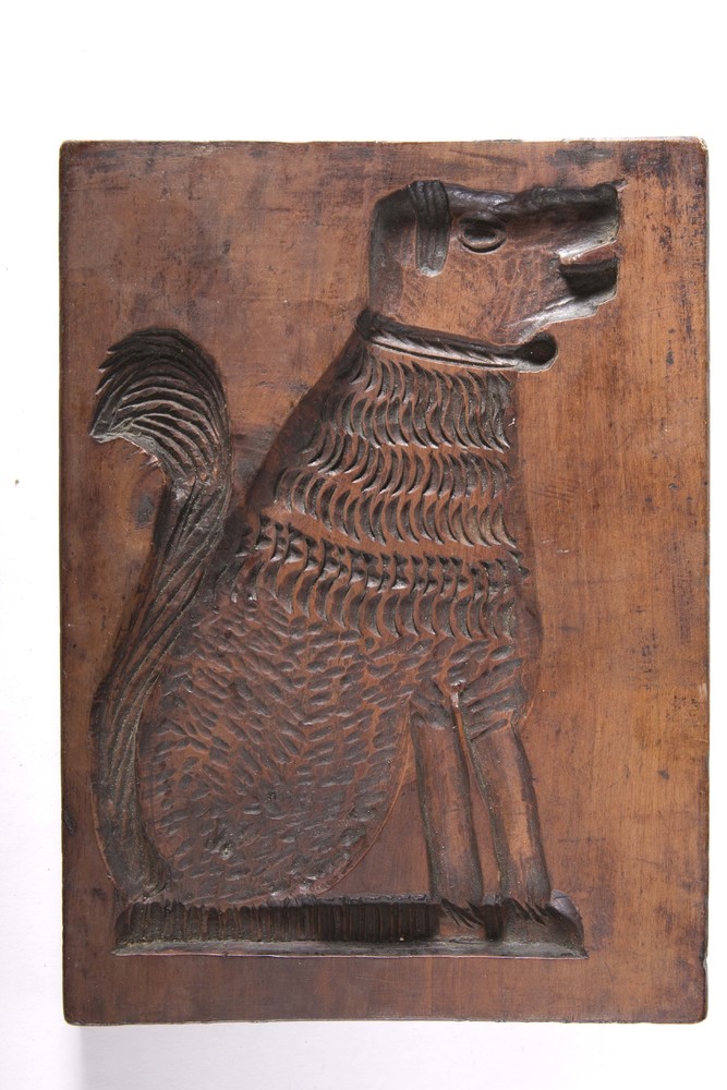 Speculaasplank uit de 19e eeuw van een kat en een hond.