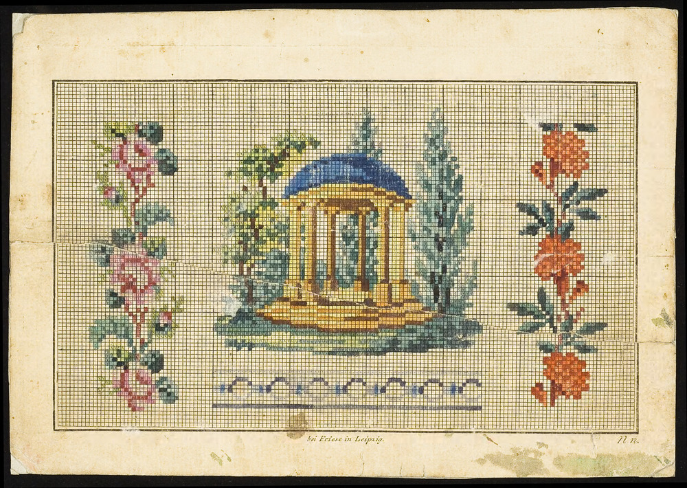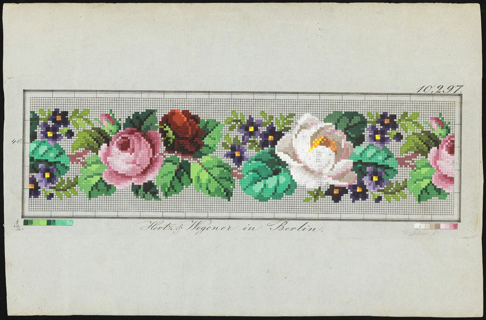 Borduurwerk voorstellende een boeket bloemen, in pet...