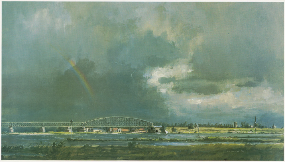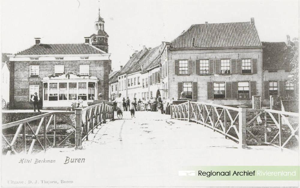 Stadsgezicht met de brug over de Korne. Repro van an...