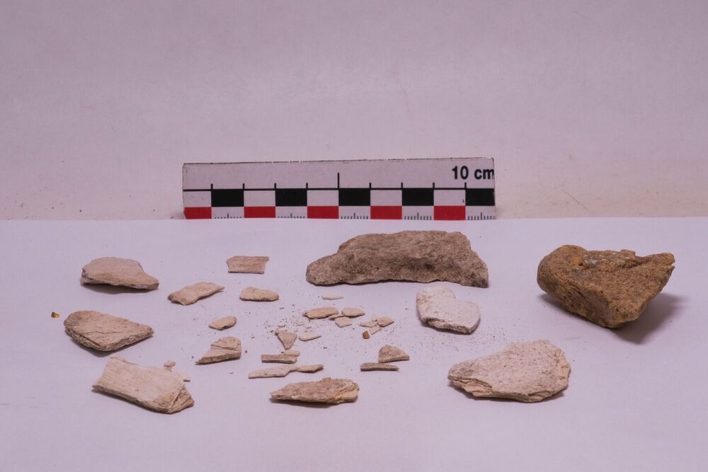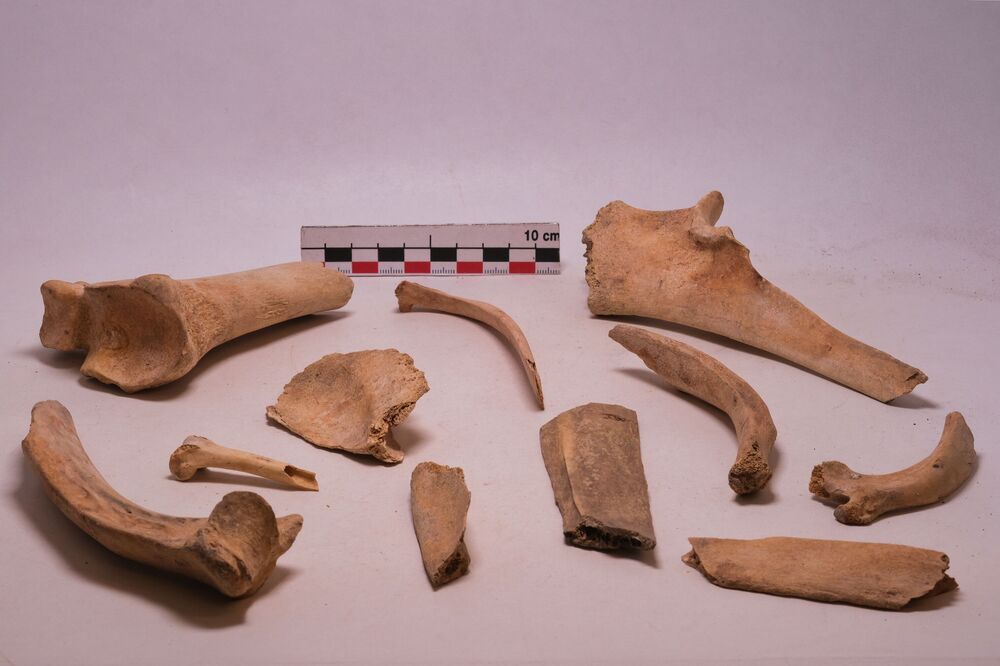 Fragmenten, been/aardewerk/ijzer/glas/schelp/kalk,