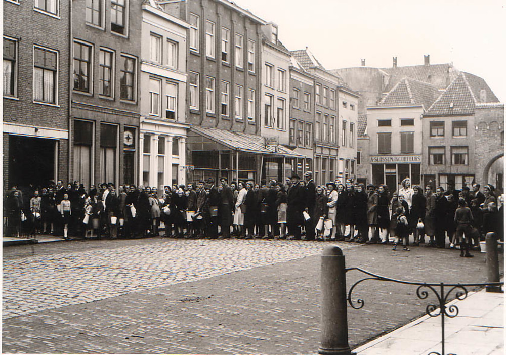 Melk halen in de gaarkeuken in de Waterstraat te Zal...