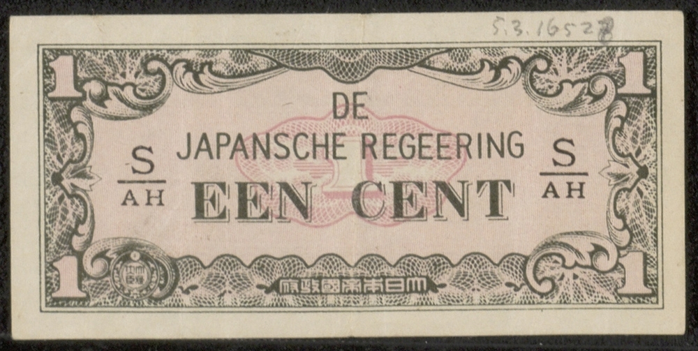 Bankbiljet van 1 cent van "De Japansche Regeering", ...