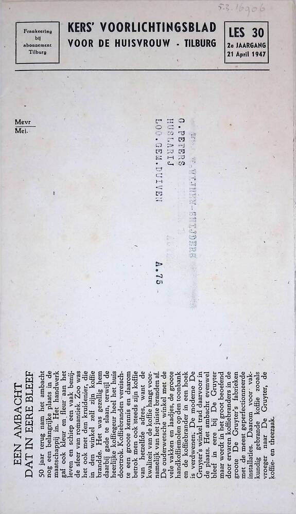 Kers' voorlichtingsbureau voor de huisvrouw. Les 30,...