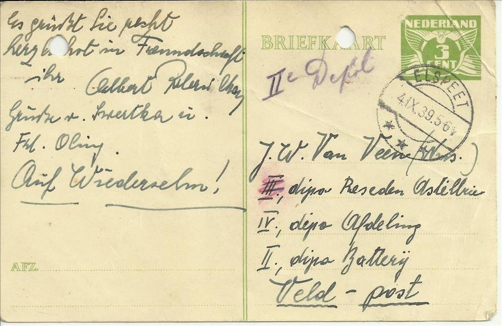 Breifkaart aan mej. v.d. Bent 26 september 1944