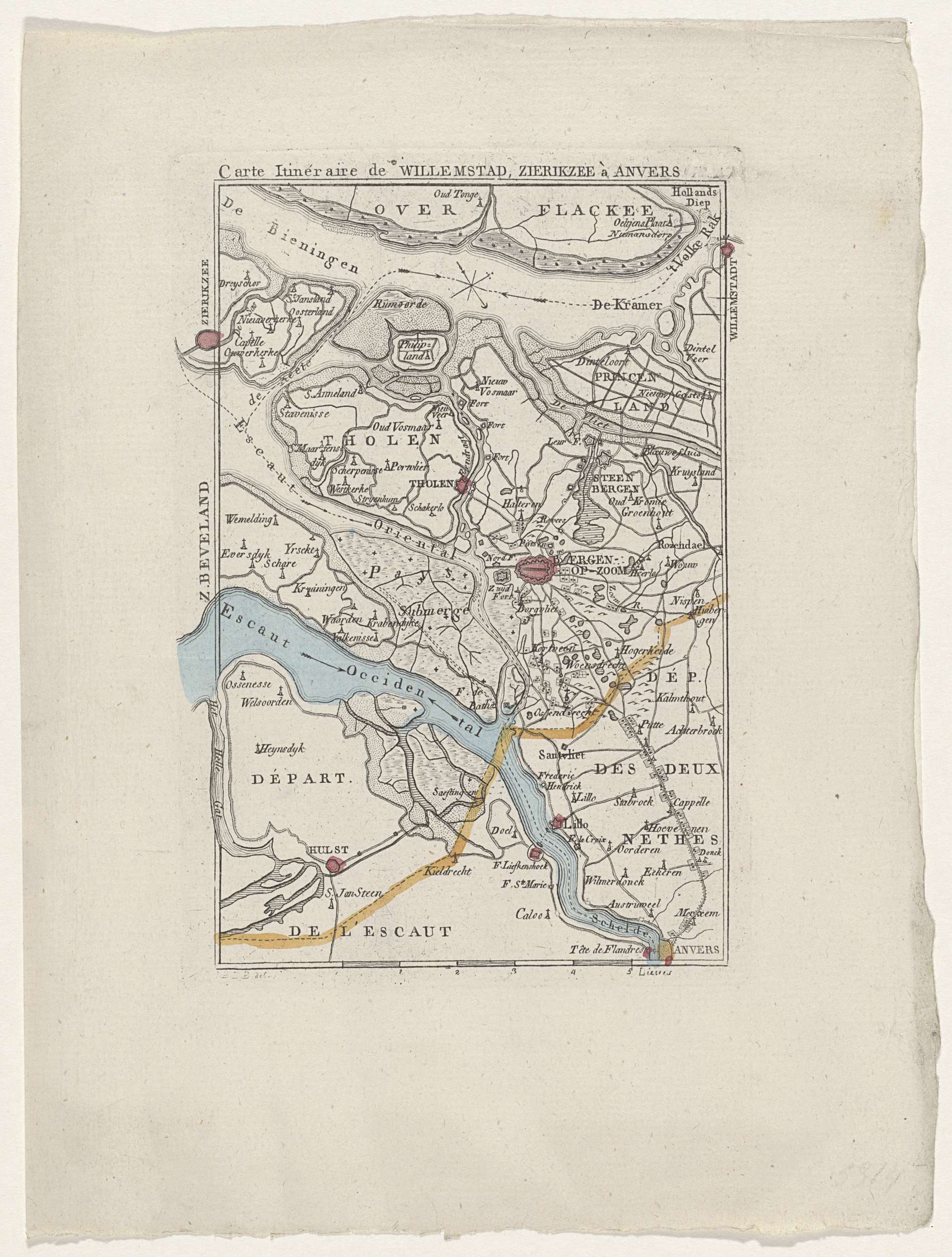 Kaart van het gebied rond Bergen op Zoom, ca. 1830