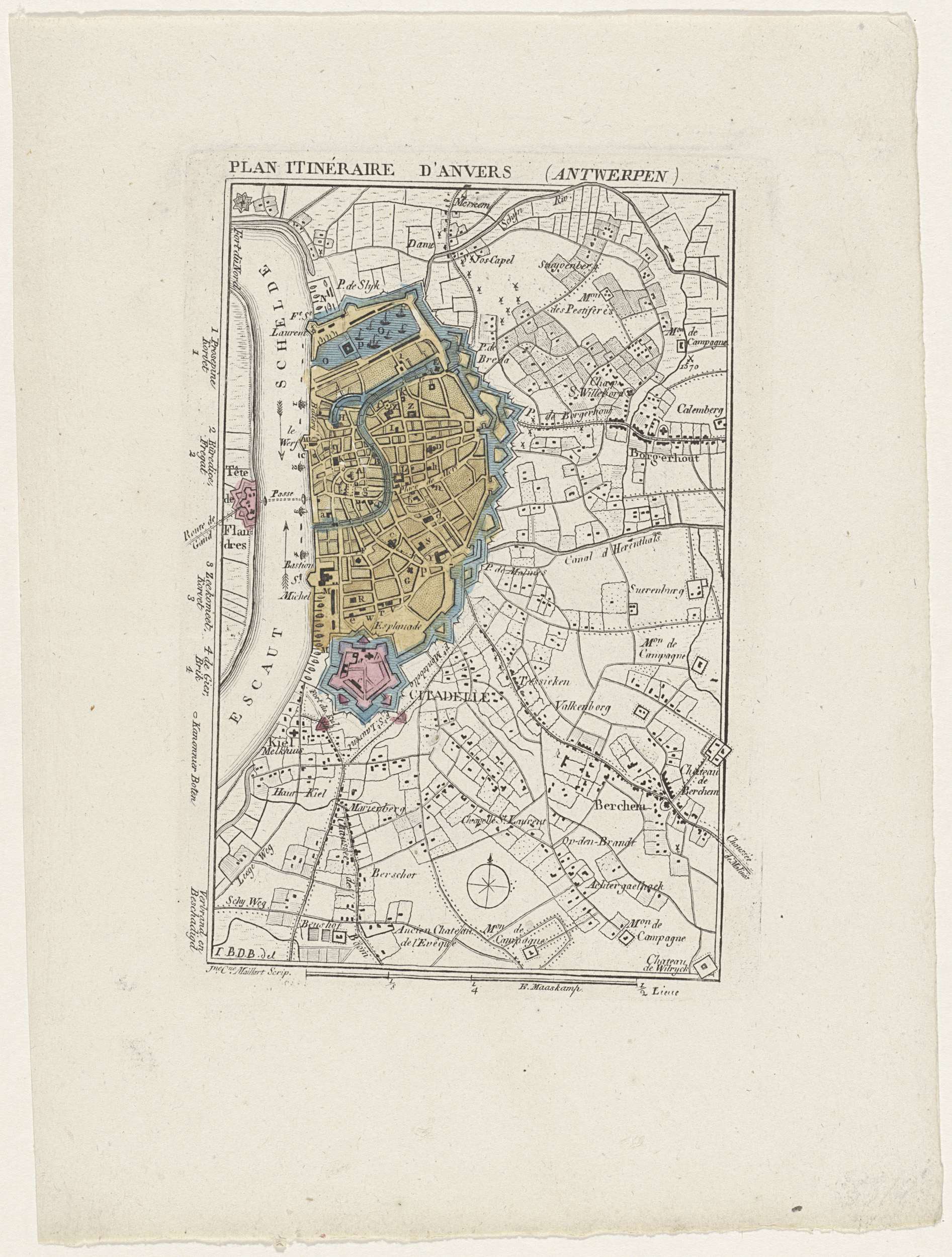 Plattegrond van Antwerpen en de Citadel, 1830